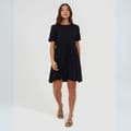 This Brave Soul babydoll dress is a charming addition to your wardrobe. Featuring a smocked design, it comes in a mini length with a crew neck and short sleeves. The solid pattern and straight hemline offer a classic look, perfect for various occasions. -