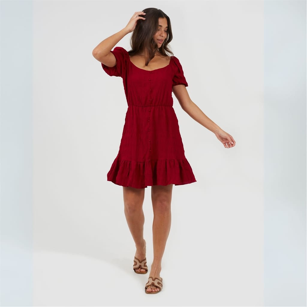 Discover the charm of Brave Soul's babydoll dress, a mini-length piece with a sweetheart neckline and short puff sleeves. This solid-coloured dress features a ruffle hem and button closure, adding a touch of elegance. The regular fit ensures comfort, while the button placket and ruffle embellishments enhance its stylish appeal. -
