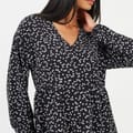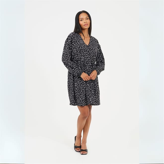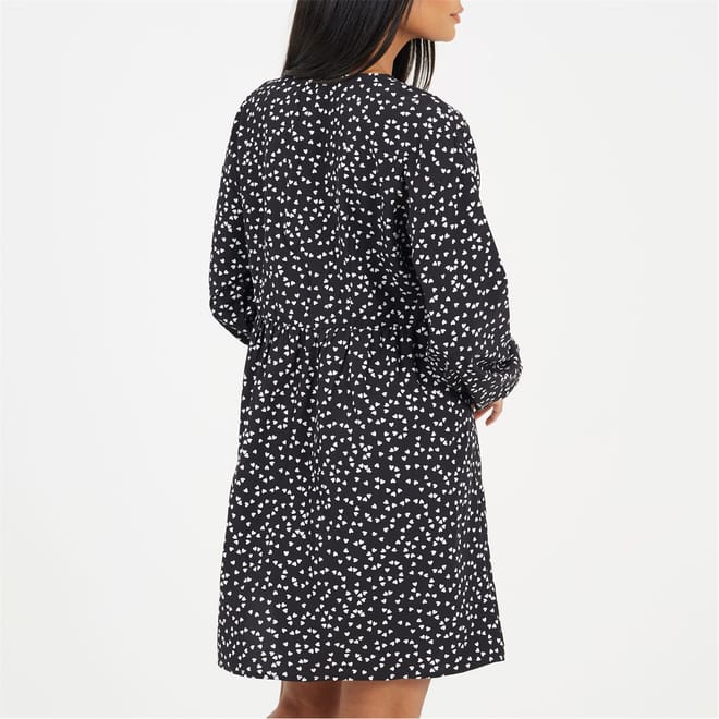 This Brave Soul mini babydoll dress features a charming heart pattern and a flattering V-neck. Designed with long sleeves and a straight hem, it offers a regular fit for comfortable wear. The dress is completed with a front button closure, adding a touch of practicality to its stylish design. -