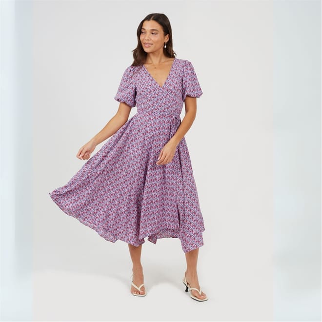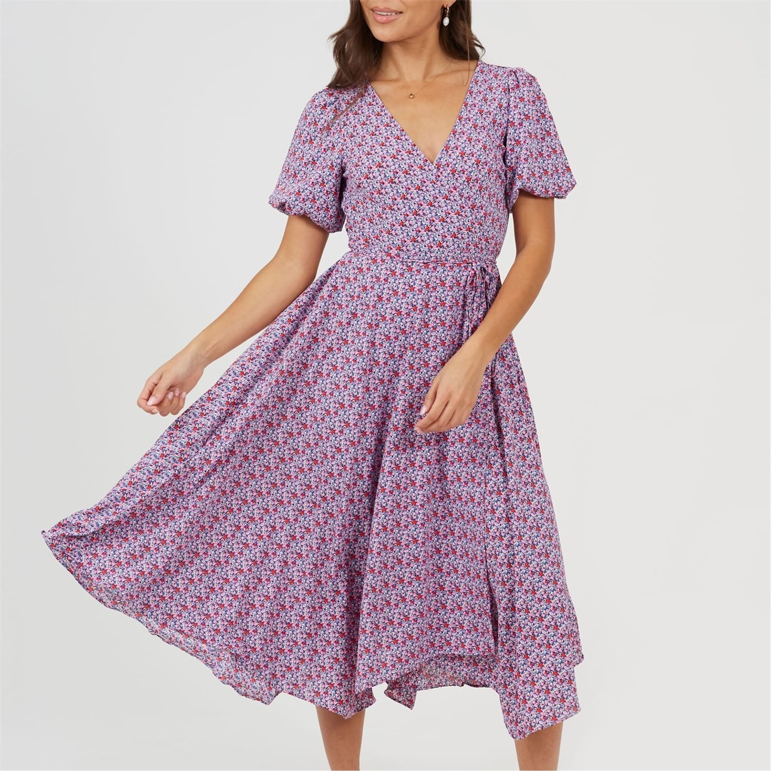 Discover the charm of Brave Soul's wrap dress, a midi-length piece that combines elegance with a floral pattern. Featuring a v-neck and puff sleeves, this dress offers a regular fit and an asymmetrical hem for a modern touch. The tie closure adds a stylish element, making it a versatile addition to any wardrobe. -