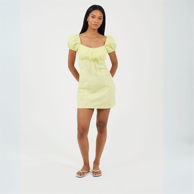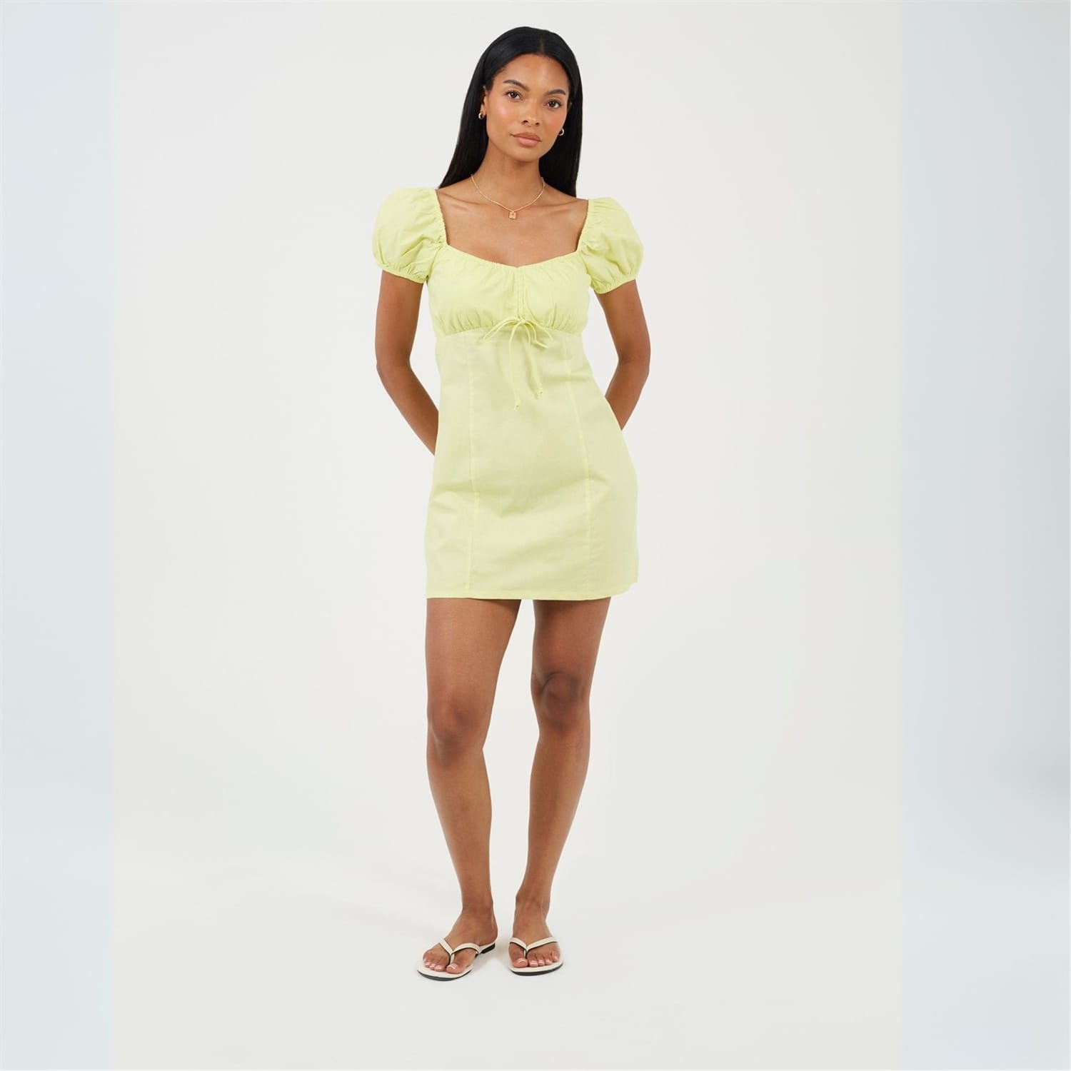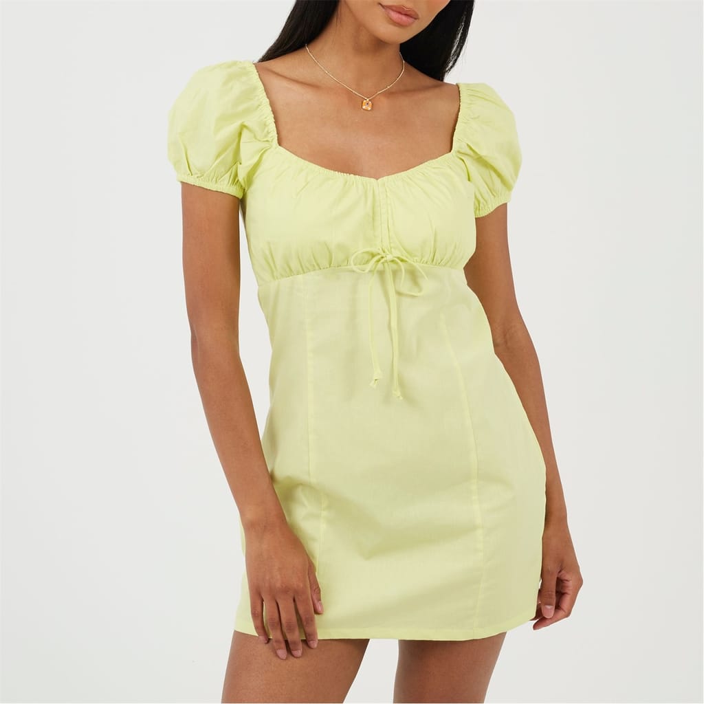 Discover the charm of the Brave Soul mini milkmaid dress. This solid-coloured piece features a square neck and short puff sleeves, offering a classic yet contemporary look. The dress is adorned with smocked and ruched embellishments, complemented by a trim detail. A drawstring closure and regular fit ensure comfort and style, while the straight hemline completes this elegant design. -