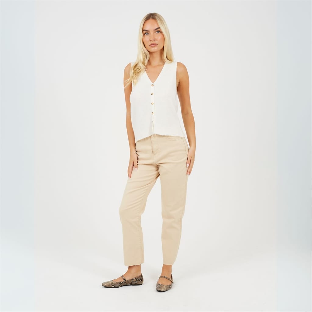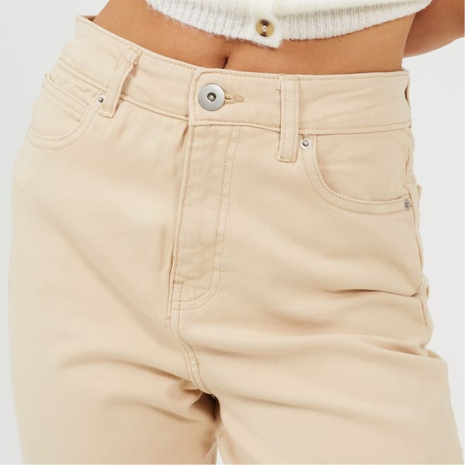 Brave Soul Women's jeans. High waisted Mom style, three waist pockets, two back pockets. Raw hem, solid colourway. -