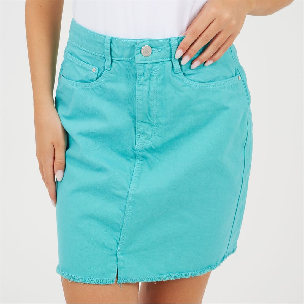 Brave Soul Women's skirt. Mini Length, mid rise waist button and zip closure. Waist pockets,two back pockets, raw hem. Solid Turquoise colourway. -