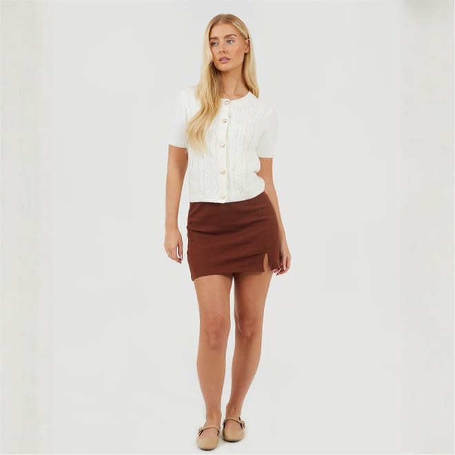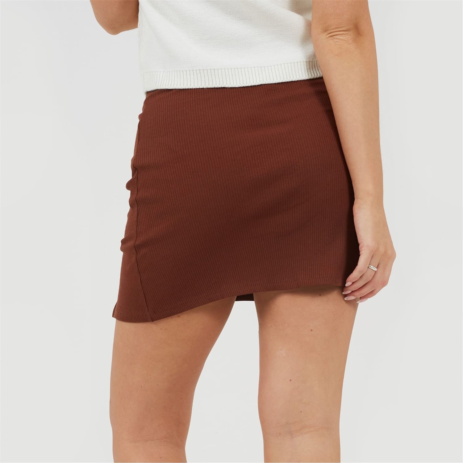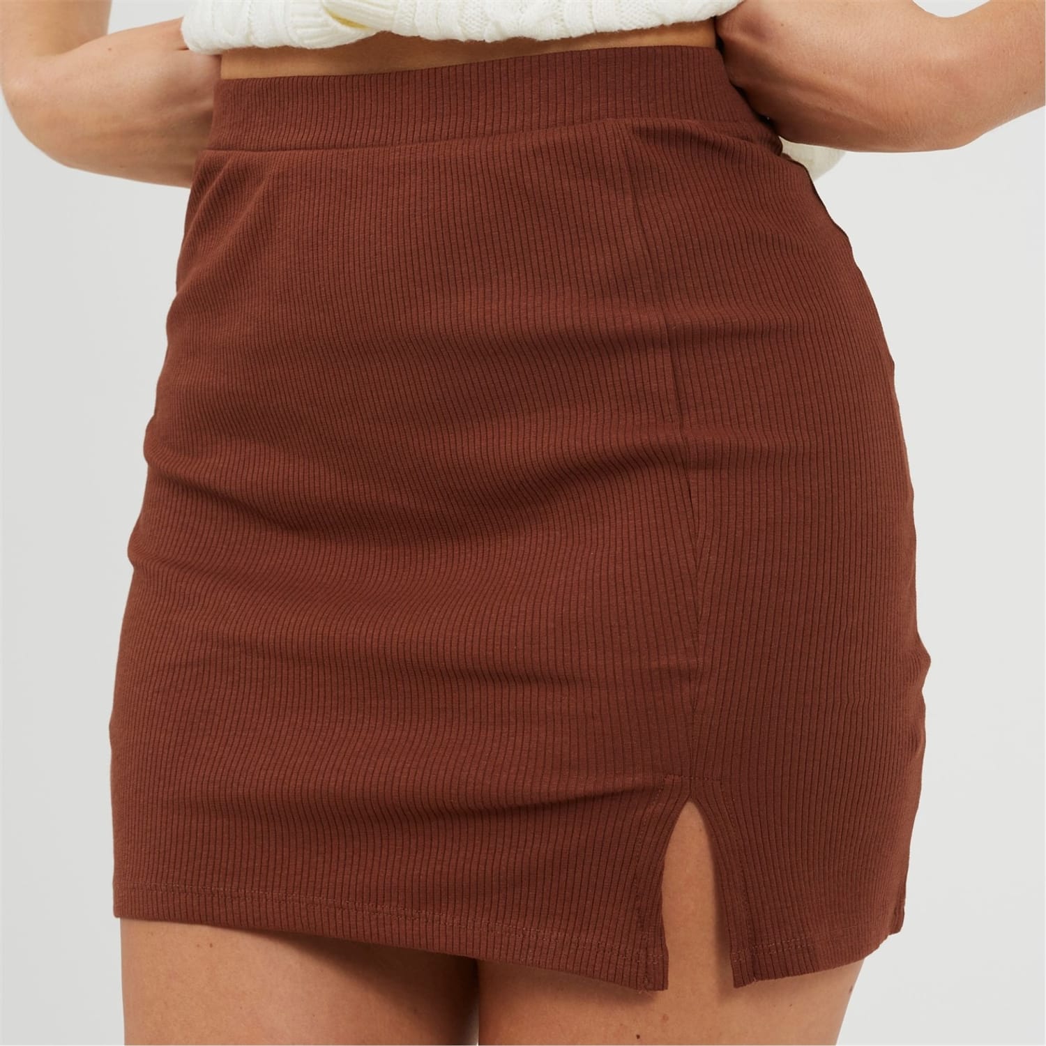 Brave Soul Women's skirt. Mini Length, split hem detail to one side. Elasticated waist, solid colourway. -