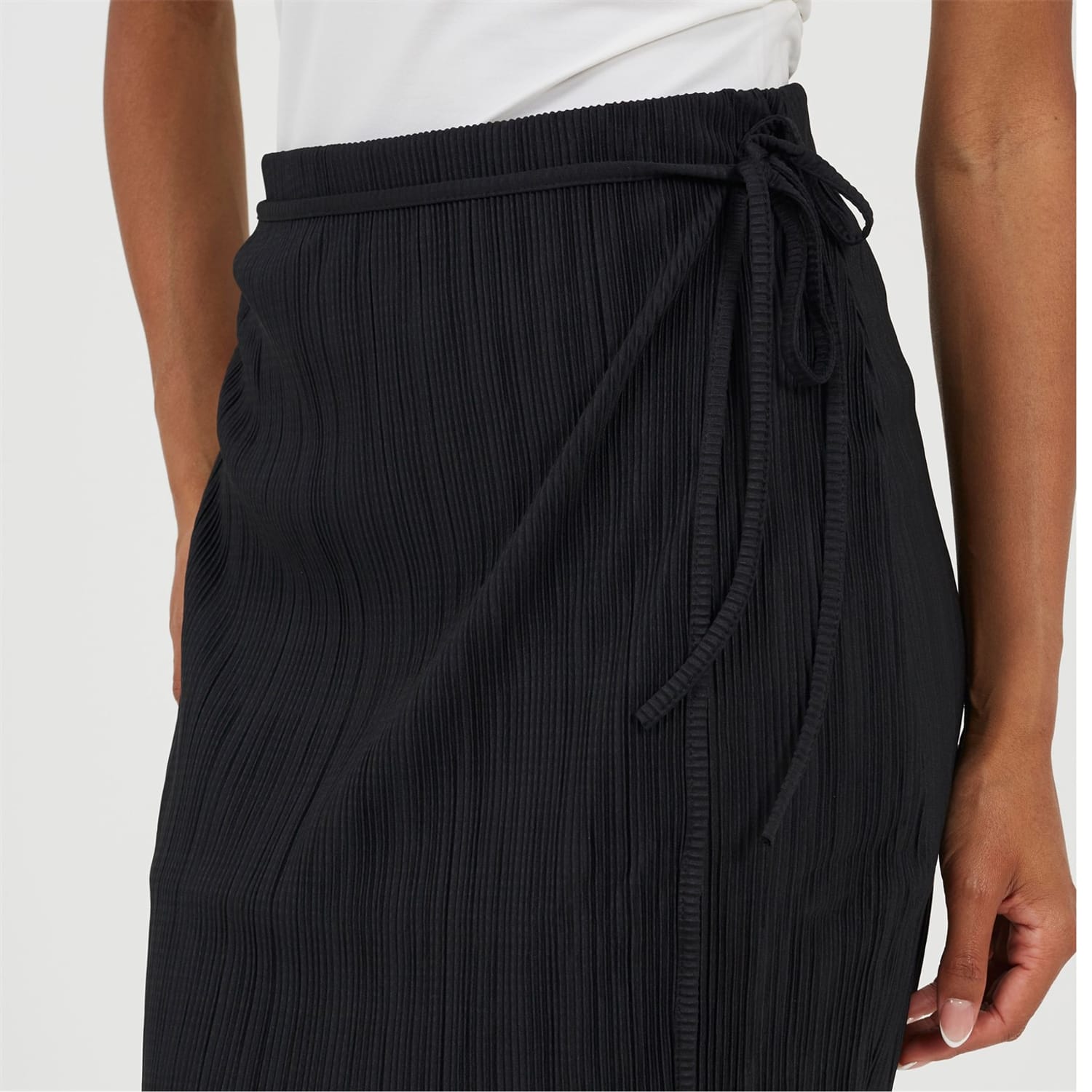 Brave Soul Women's skirt. Mini length, plisse fabric. Side tie fastening detail, solid colourway. -