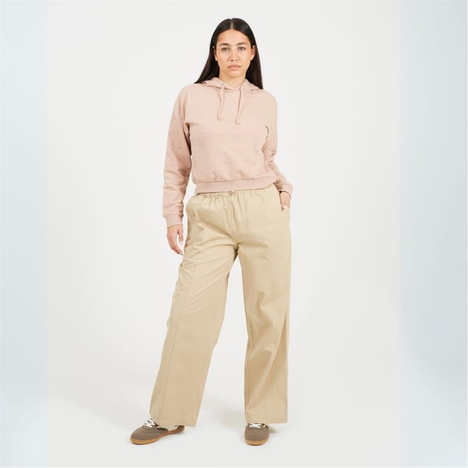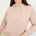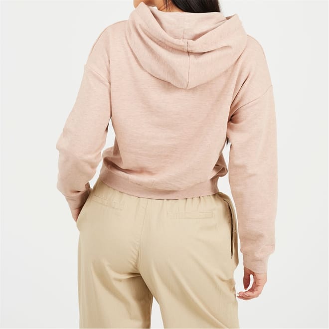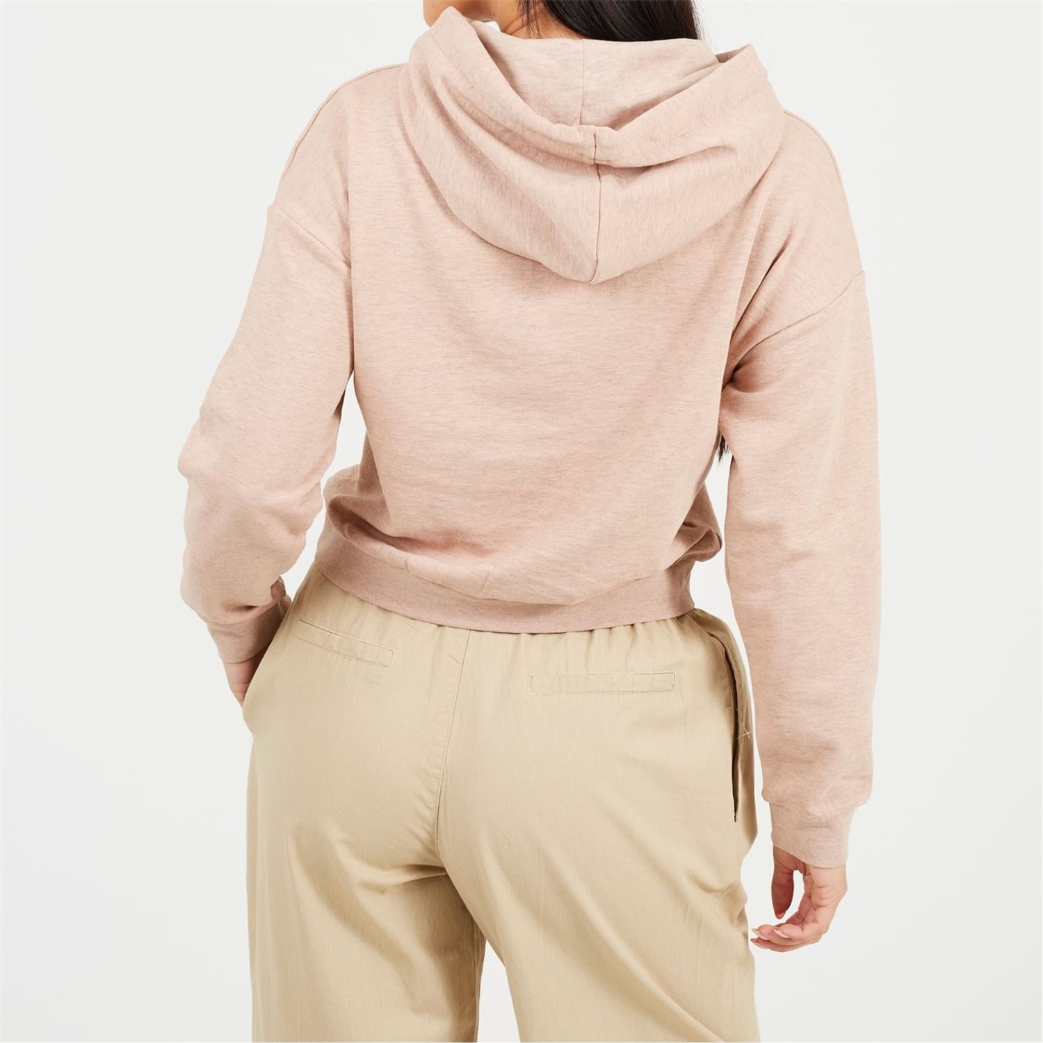 Brave Soul Women's sweatshirt. Cropped length, long sleeve, crossover v neck. Hooded with adjustable drawcords, front kangaroo pocket. Ribbed cuffs & hem. -