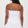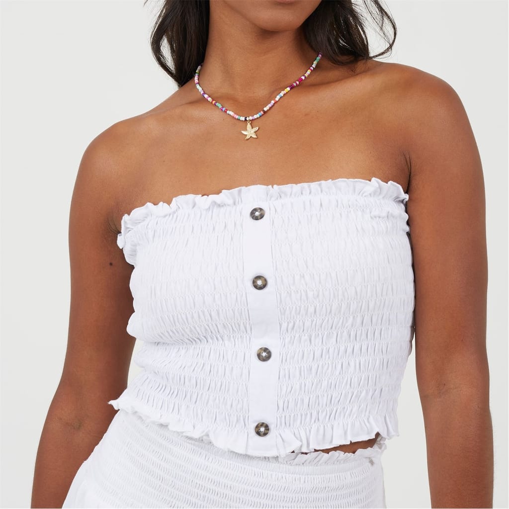 Brave Soul Women's Boob Tube. Sleeveless, all over shirred fabric, front button details. Frill edges, solid colourway. -