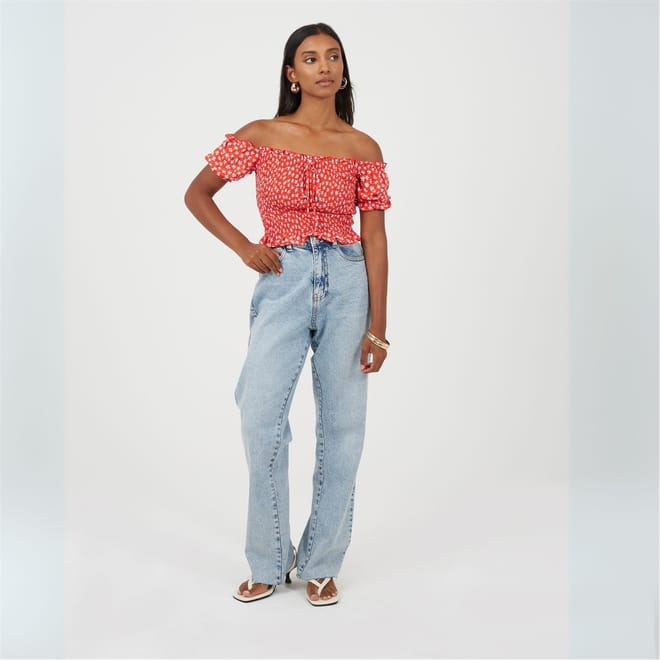 Embrace the charm of spring and summer with this Brave Soul top. Featuring an off-the-shoulder design and short puff sleeves, it offers a regular fit with an elasticated cuff for added comfort. The floral pattern adds a touch of elegance, while the ruffle hem and tie front closure enhance its casual appeal. -