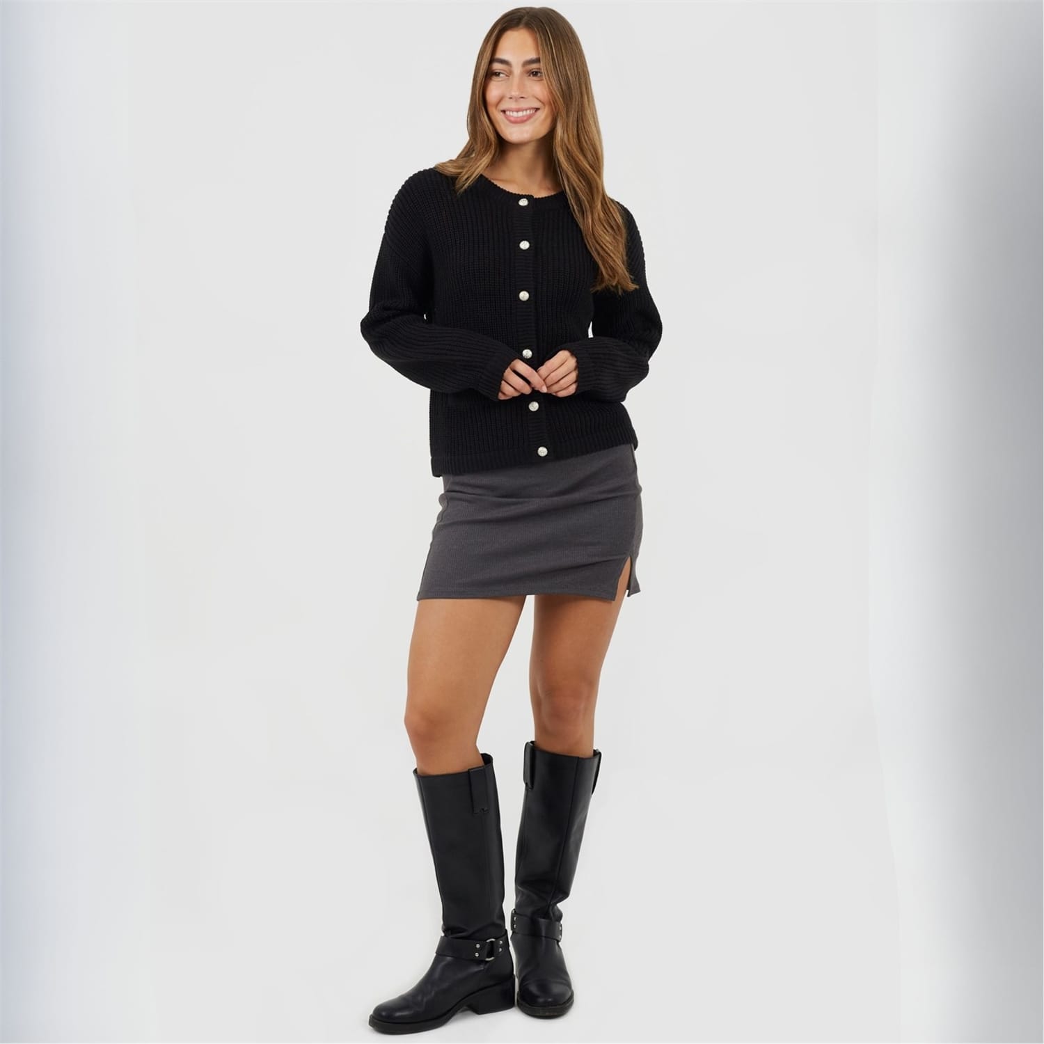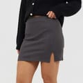 Brave Soul Women's skirt. Mini Length, split hem detail to one side. Elasticated waist, solid colourway. -