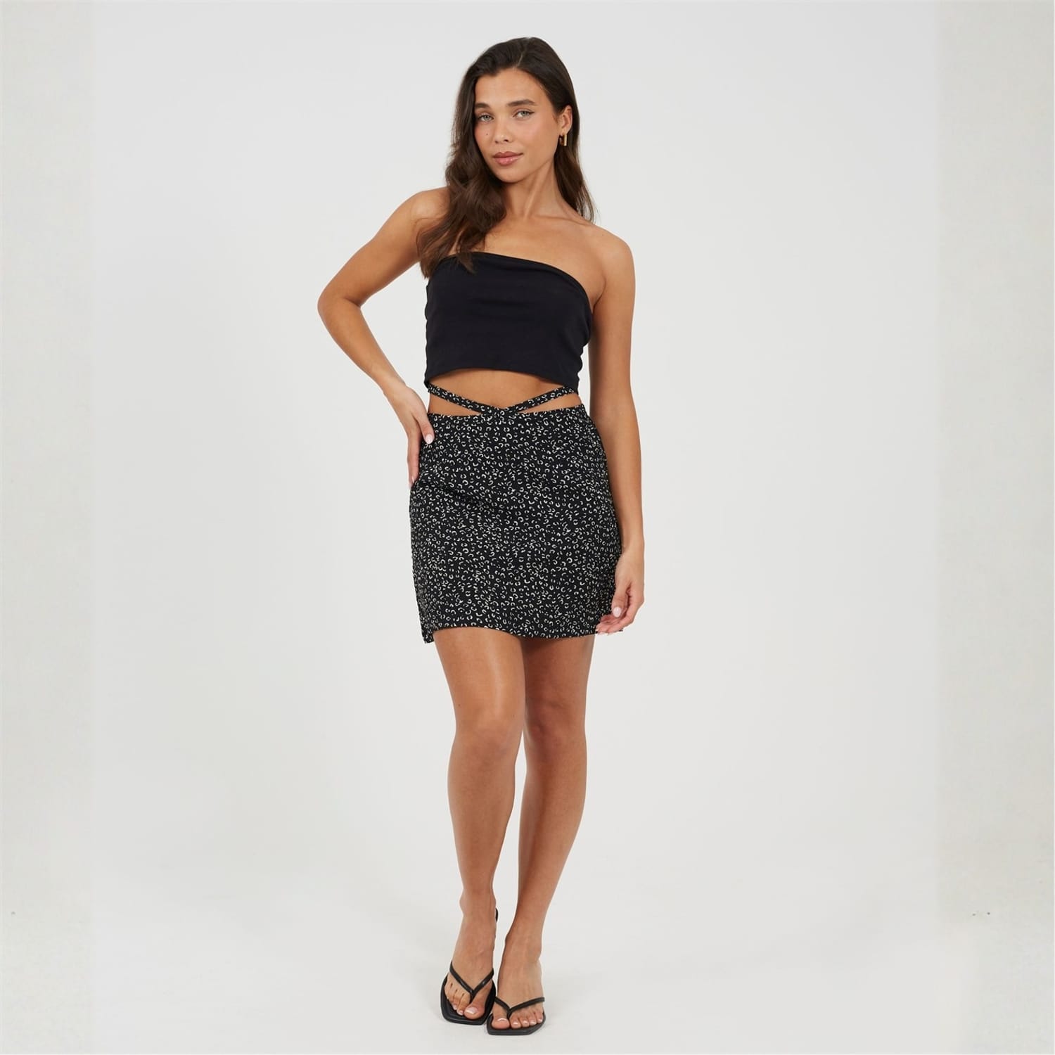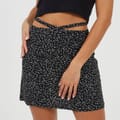 Brave Soul Women's skirt. Mini length, waist tie detail. All over abstract animal print. -