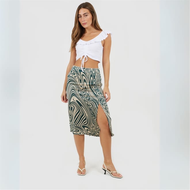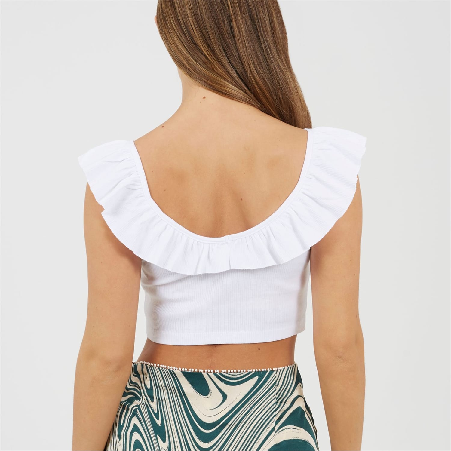 Brave Soul Women's vest. Statement necline frill, front ruched detail with drawstring. Drop back, solid colourway. -