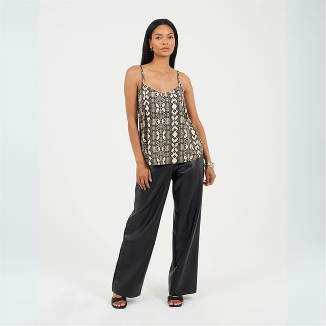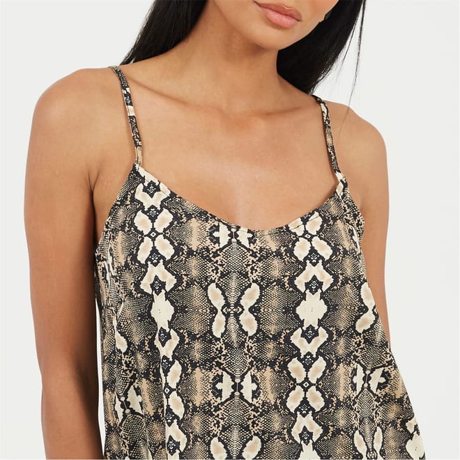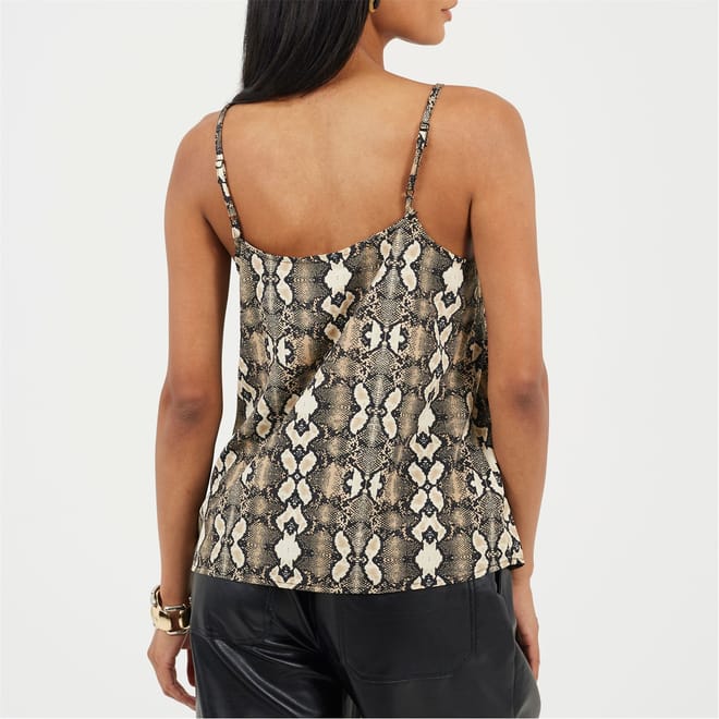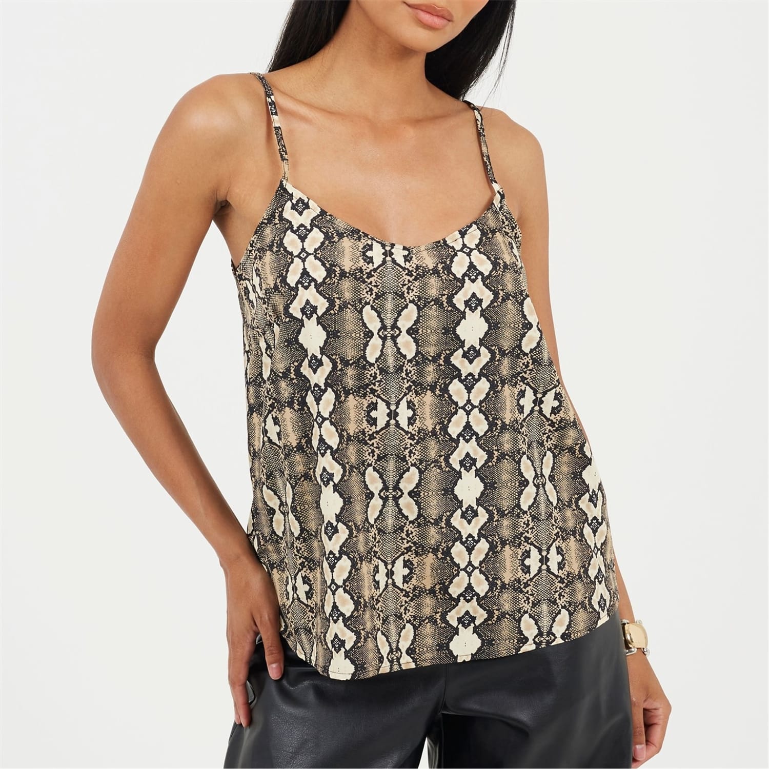 Brave Soul Womens top. Cami shape, sleeveless with adjustable straps. V shape neckline, all over snale print. -