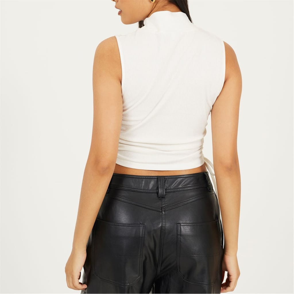 Brave Soul Women's top. Sleeveless with high neck. Adjustable self fabric drawstrings to each side. Solid Colourway. -