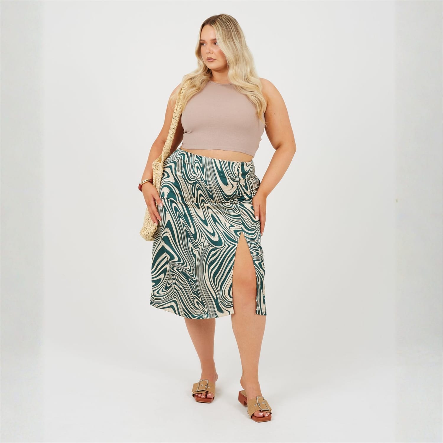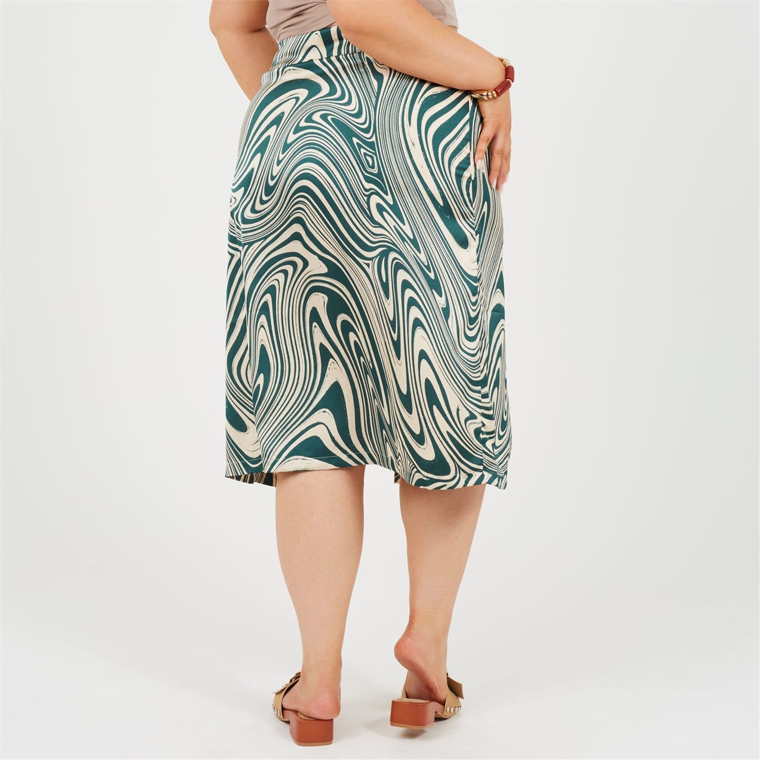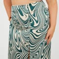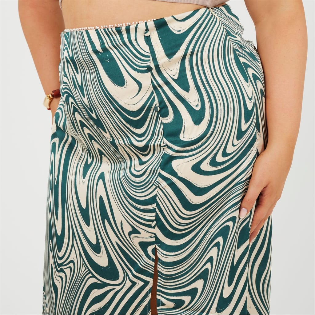 Brave Soul Women's skirt. Plus Size, midi length, all over swirl print. Side split detail, fabric button detail to one side, -