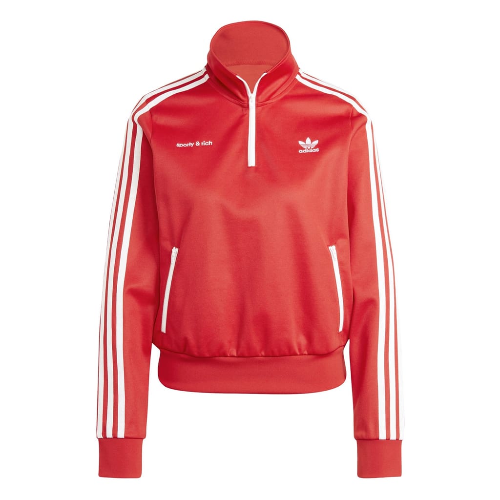 This adidas Originals top features a distinctive logo embellishment and the iconic three stripes pattern. Designed with a zip neck and long sleeves, it offers a regular fit for comfortable wear. The ribbed cuffs add a touch of detail, while the zipper closure ensures ease of use. Perfect for those who appreciate classic sportswear style. -
