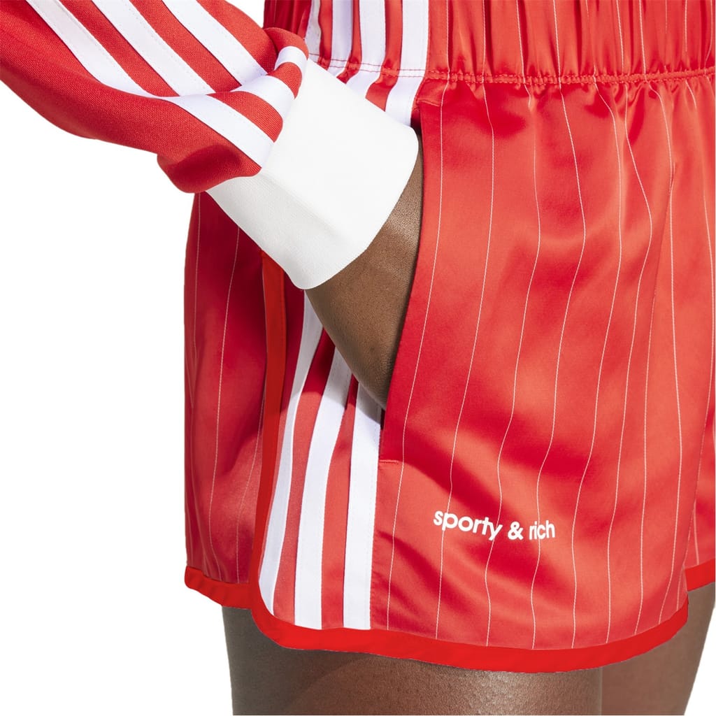 These adidas Originals shorts feature a woven design with a vertical stripe pattern, perfect for a casual look. The bermuda style is enhanced with a logo and side stripes, adding a touch of sporty flair. Ideal for those who appreciate a blend of comfort and style in their casual wardrobe. -