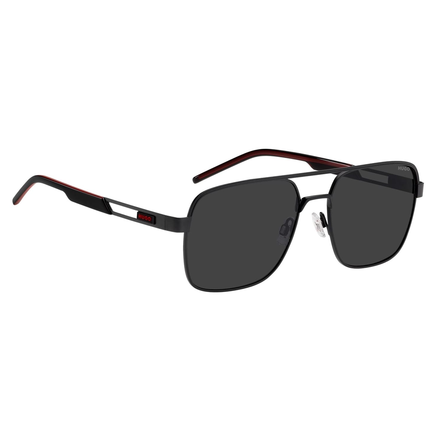 Hugo sunglasses feature a square frame style crafted from durable metal, offering a sleek and modern look. The full rim design is complemented by a distinctive double bridge, ensuring both style and comfort. These sunglasses are adorned with a subtle logo embellishment, adding a touch of brand identity to the overall aesthetic. -