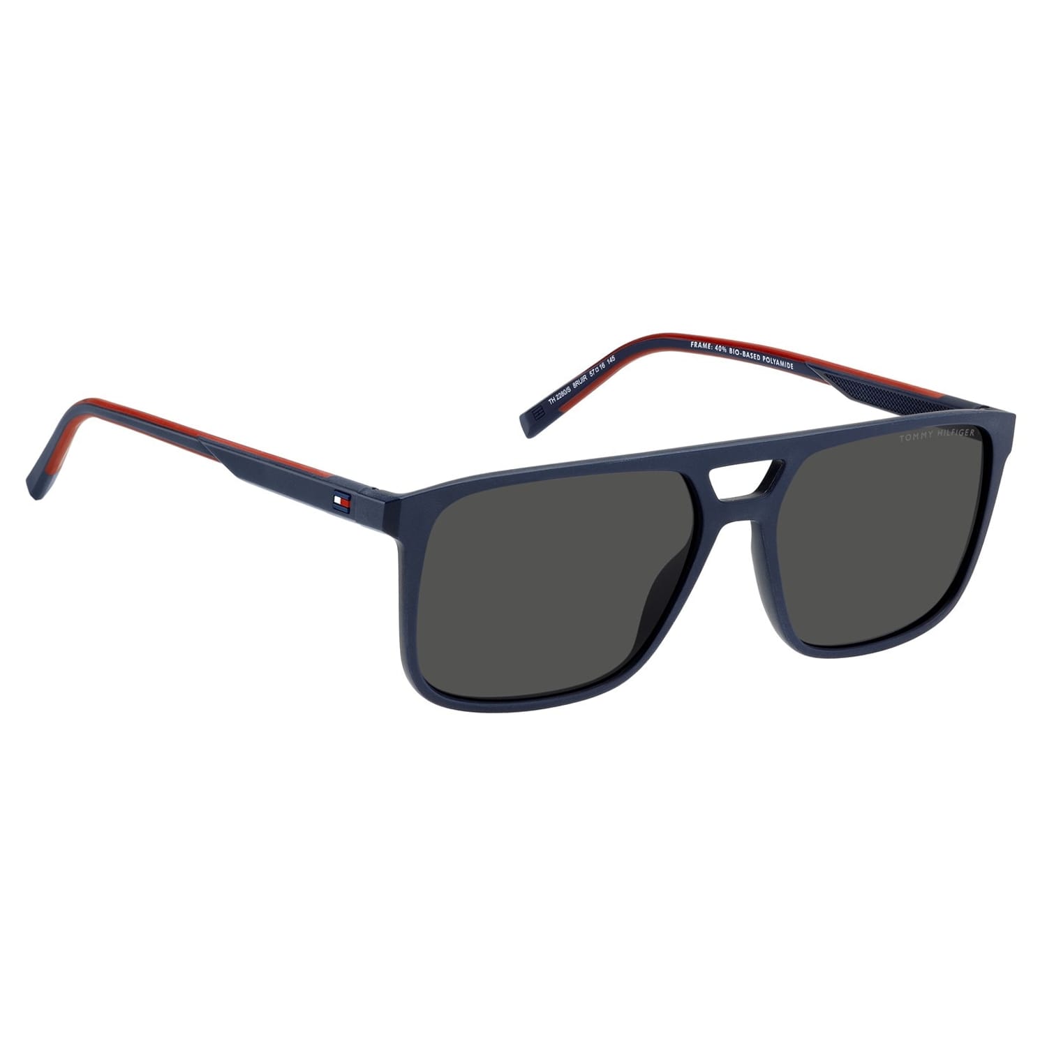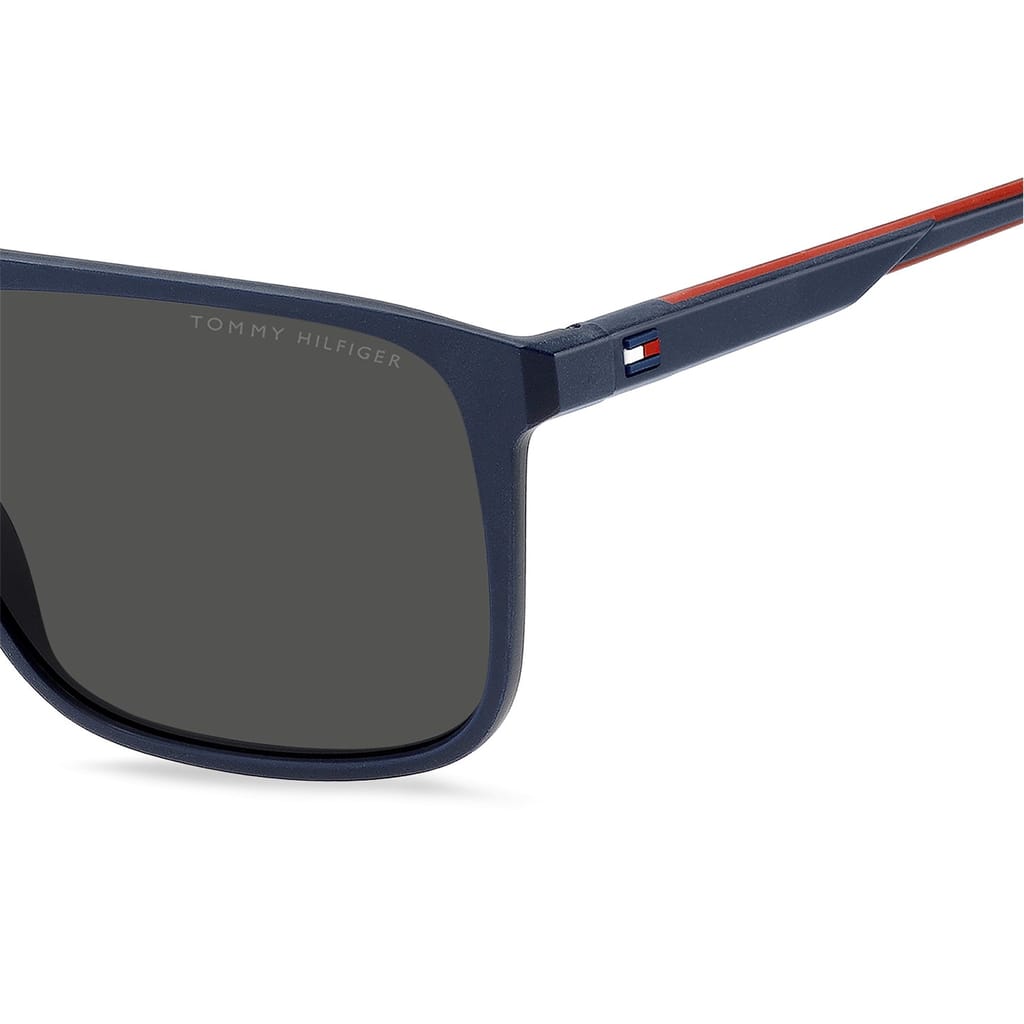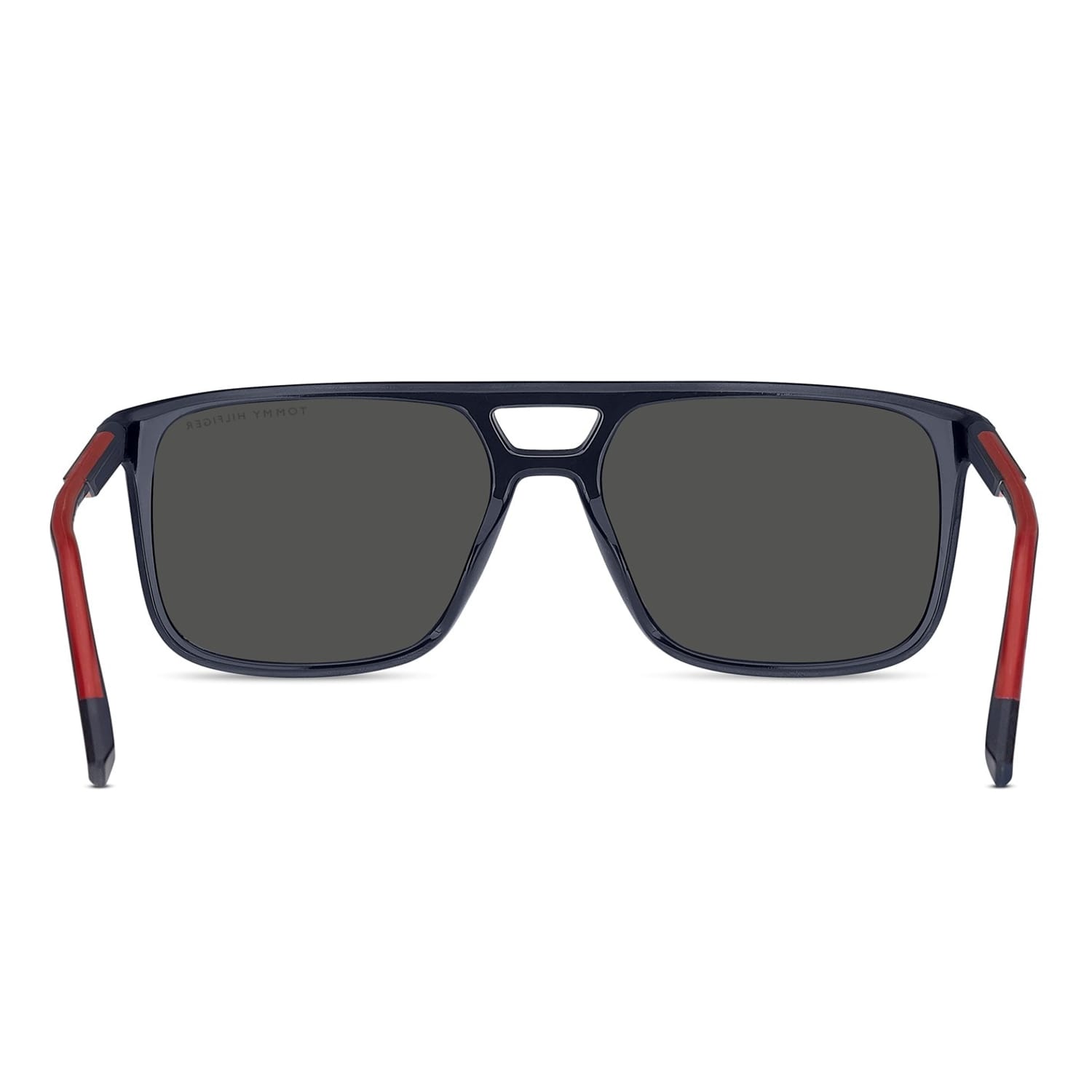 Tommy Hilfiger sunglasses feature a square frame style crafted from durable plastic. These full rim sunglasses are designed with a distinctive double bridge, offering a stylish and modern look. Perfect for those seeking a blend of fashion and functionality in their eyewear collection. -