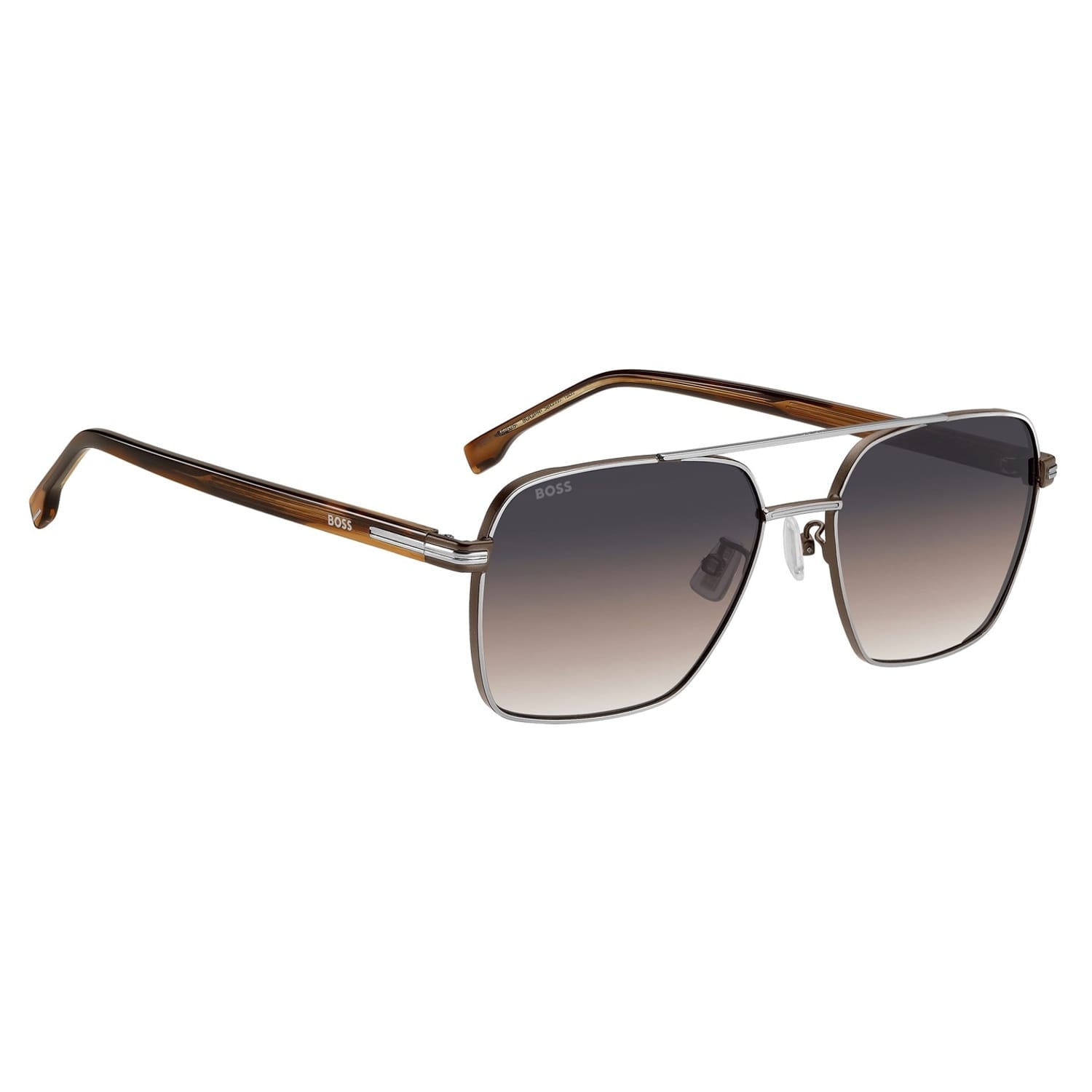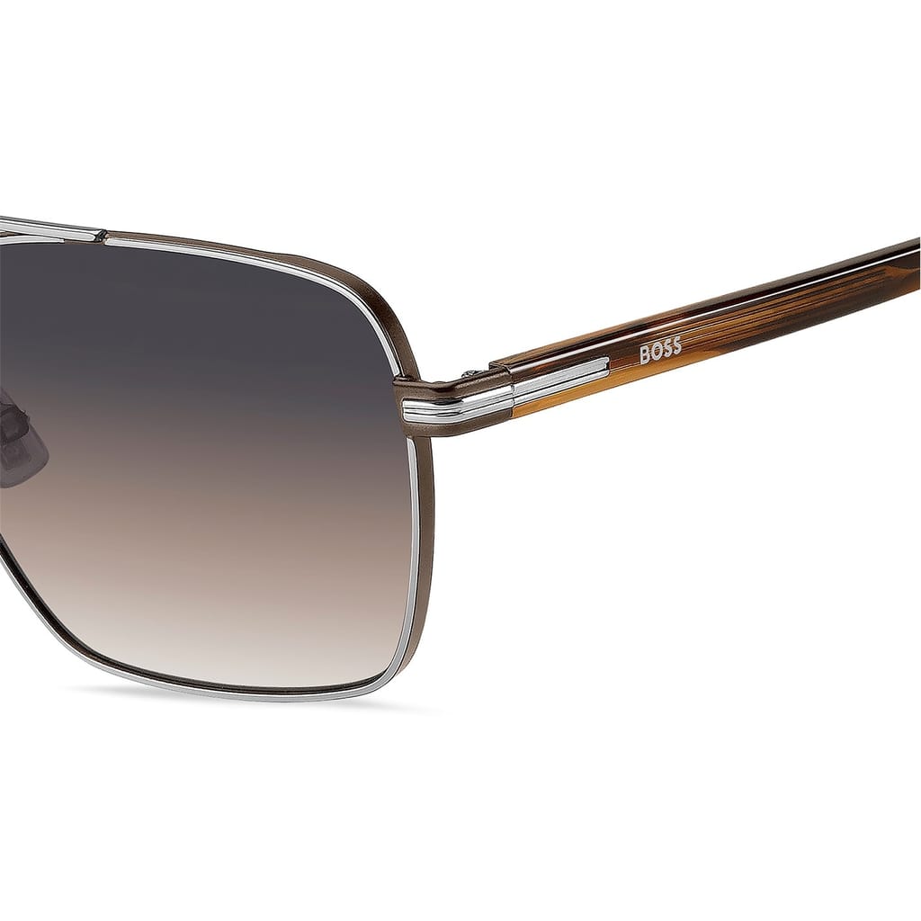 These Boss sunglasses feature a sleek rectangle frame style, crafted from a combination of metal and plastic for durability and comfort. The full rim design and single bridge style offer a classic look, while the subtle logo embellishment adds a touch of brand identity. Perfect for those seeking stylish and functional eyewear. -