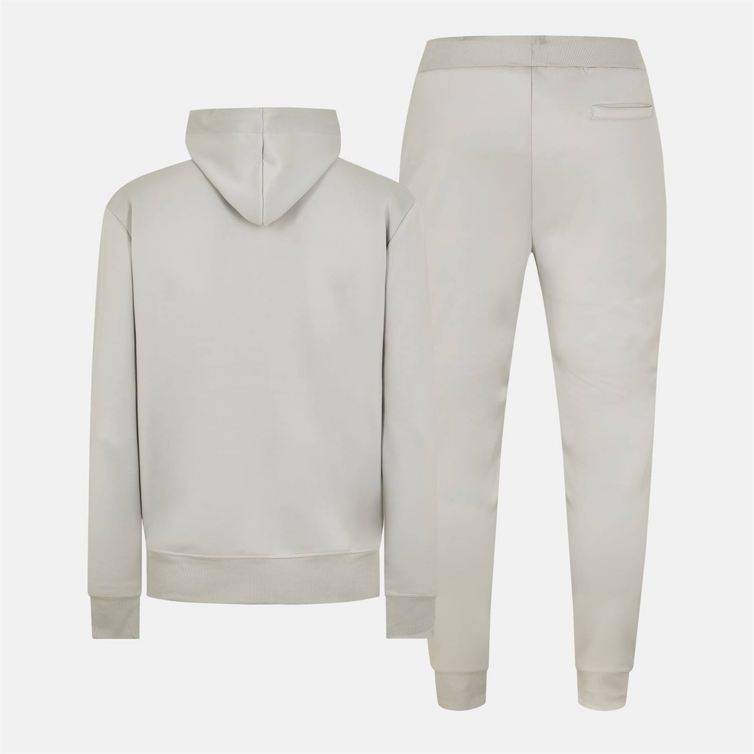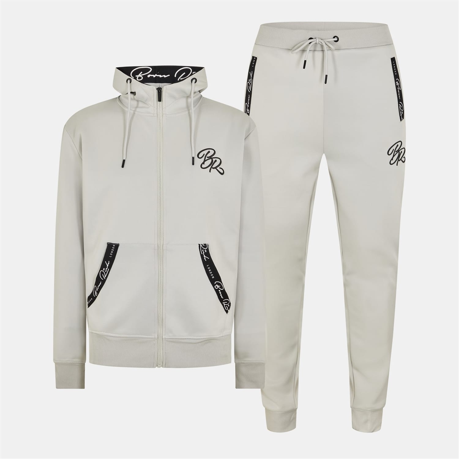 Born Rich full track suit set features a woven design with a logo print. The hoodie comes with a zip neck and long plain sleeves, offering a comfortable fit. The set includes track-style bottoms with pockets and zipped pockets for added convenience. Embroidered logo details enhance the overall look, making it a stylish choice for casual wear. -