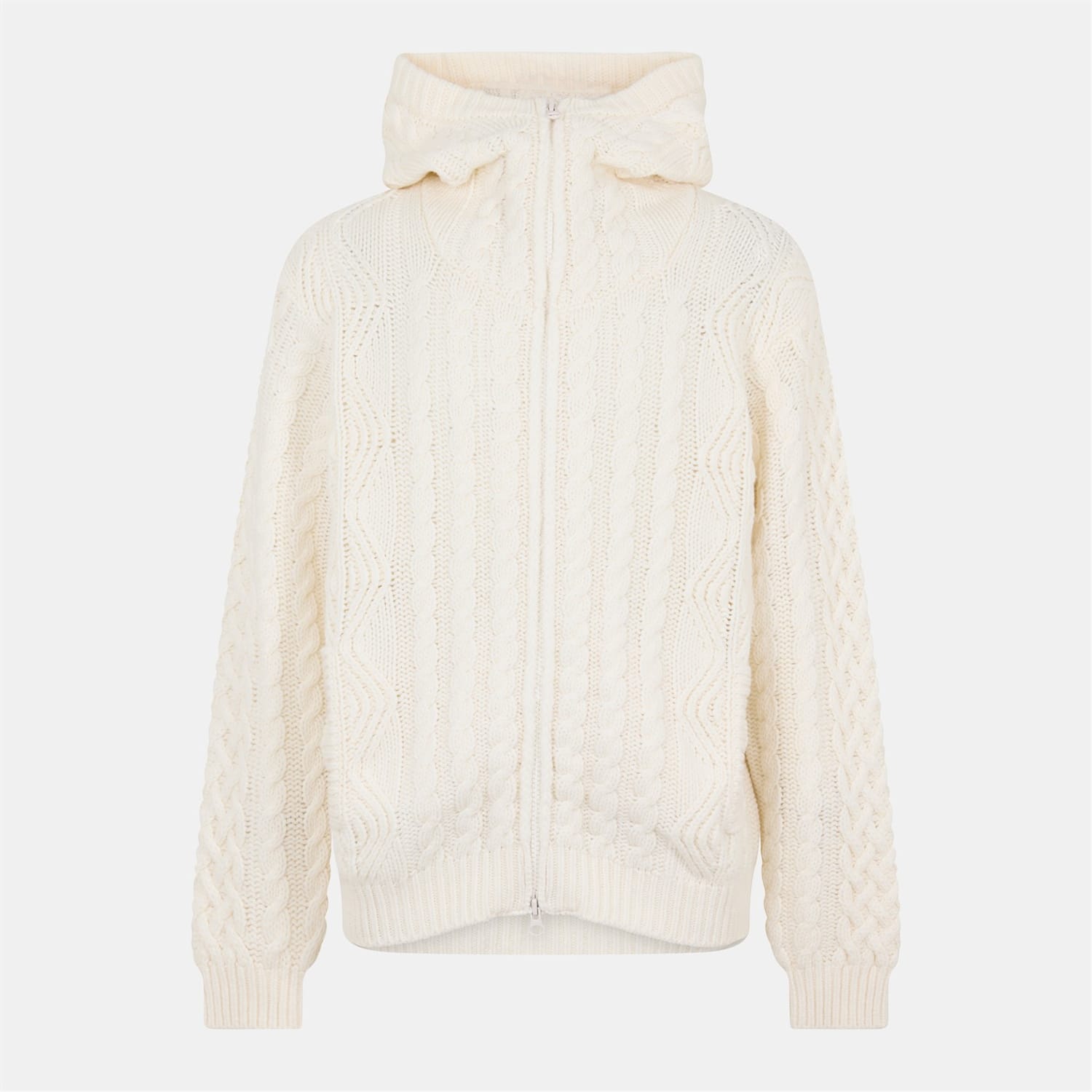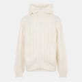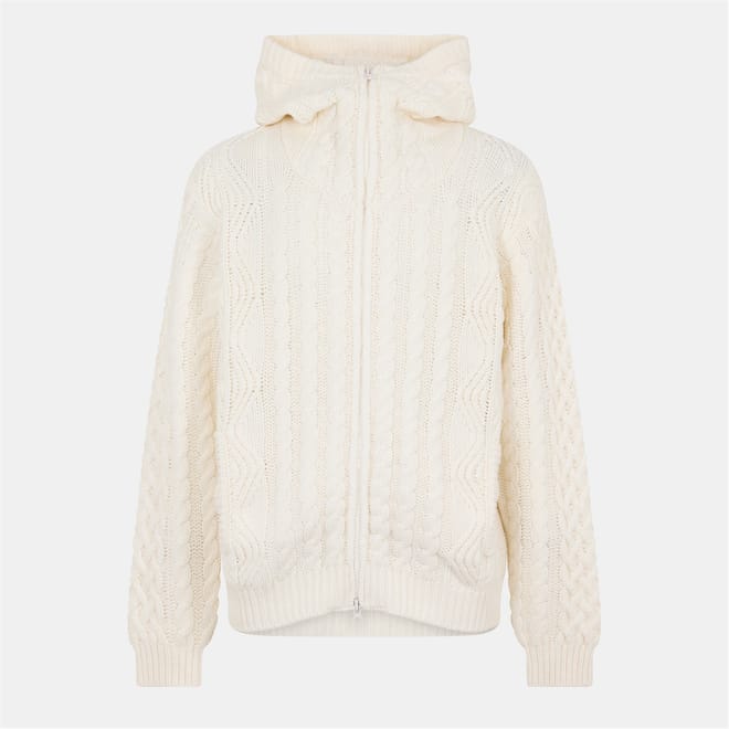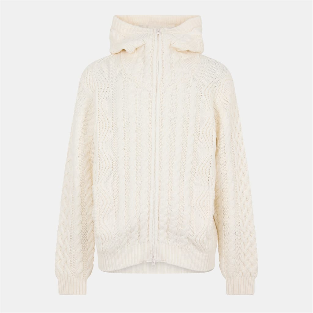This C.P. Company top features a cable knit pattern and long sleeves, offering a regular fit. The design includes a zipper closure and ribbed cuffs, providing a comfortable and stylish look. -