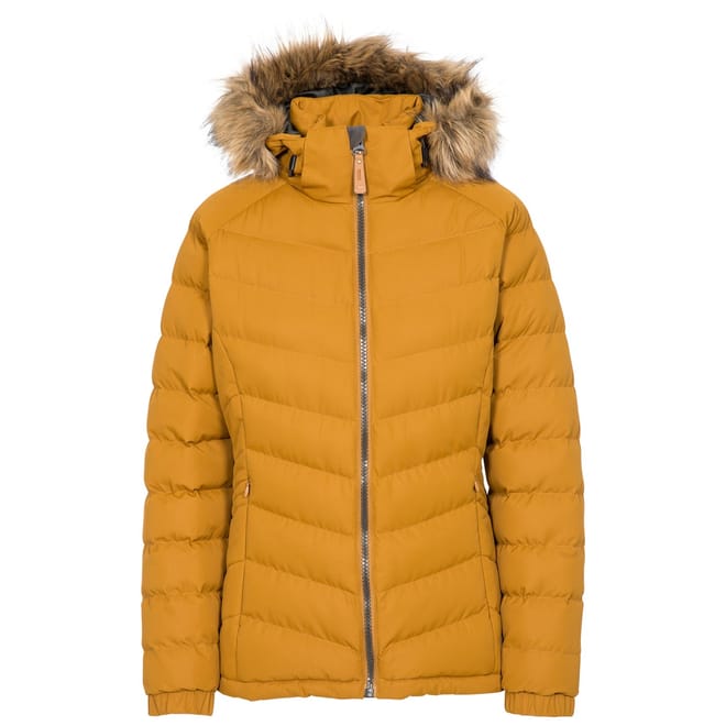 The Trespass parka coat is designed for winter, offering a padded construction for added warmth. Featuring a hooded neck and a zipper closure, this coat ensures comfort and protection against the elements. Its regular fit and solid pattern make it a versatile choice for both sport and casual collections. -