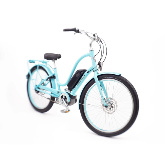 Experience the perfect blend of style and functionality with the Electra hybrid electric bike. Designed for the urban commuter, this low step cruiser bike offers a smooth ride with its turbo power feature. Equipped with disc brakes, mud guards, chain guard, and kick stands, it ensures safety and convenience. The luggage rack adds practicality, making it ideal for city rides. -