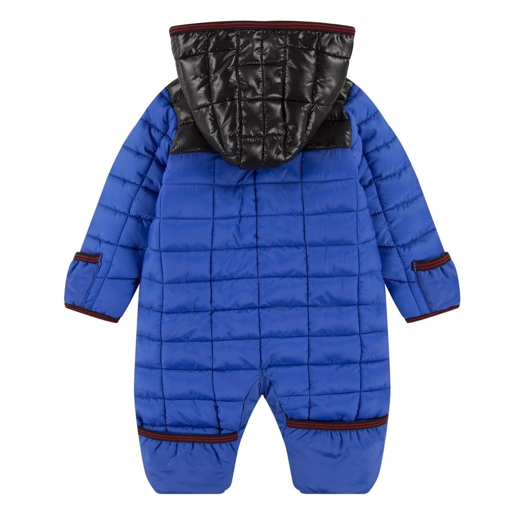 This Nike snowsuit jumpsuit features a hooded neck and long plain sleeves, offering a regular fit. The front zipper closure ensures ease of wear, while the color block pattern adds a stylish touch. Embroidered logo embellishments complete the look, making it a standout piece for any wardrobe. -