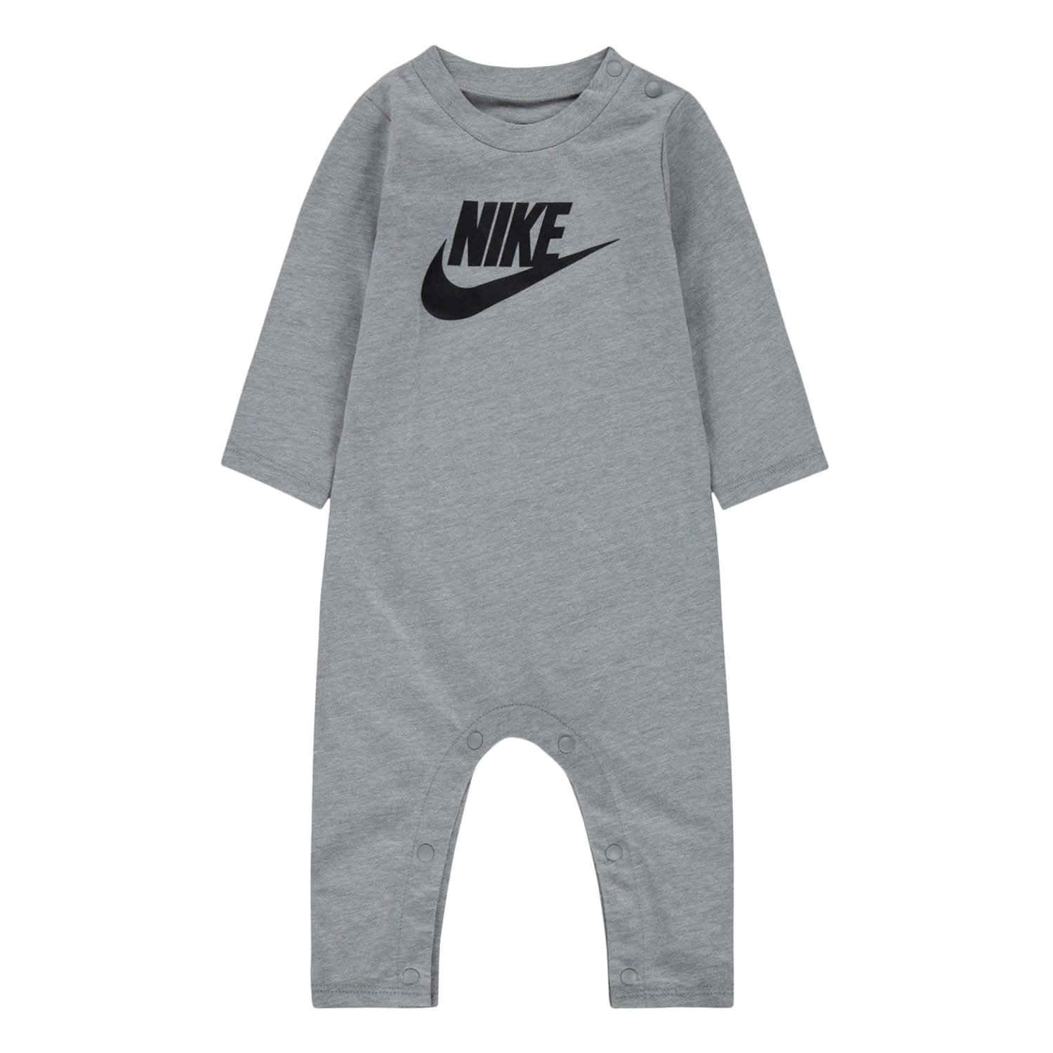 This Nike jumpsuit features a crew neck and long plain sleeves, offering a regular fit. The snap button closure ensures ease of wear. Adorned with a logo print, it combines style and functionality seamlessly. -
