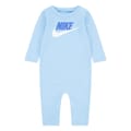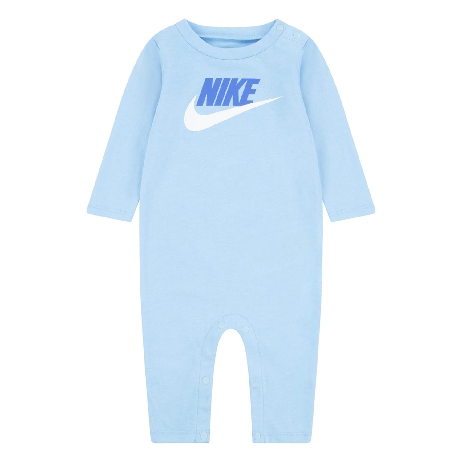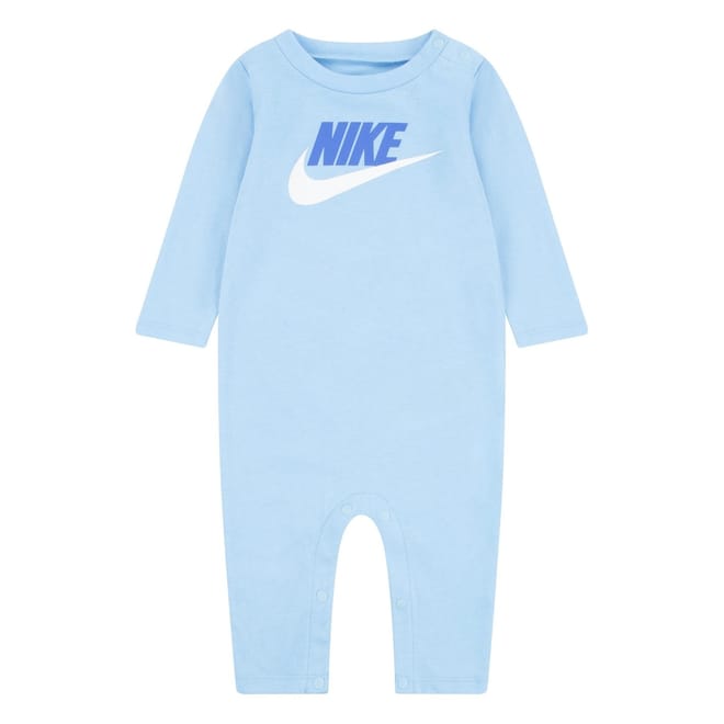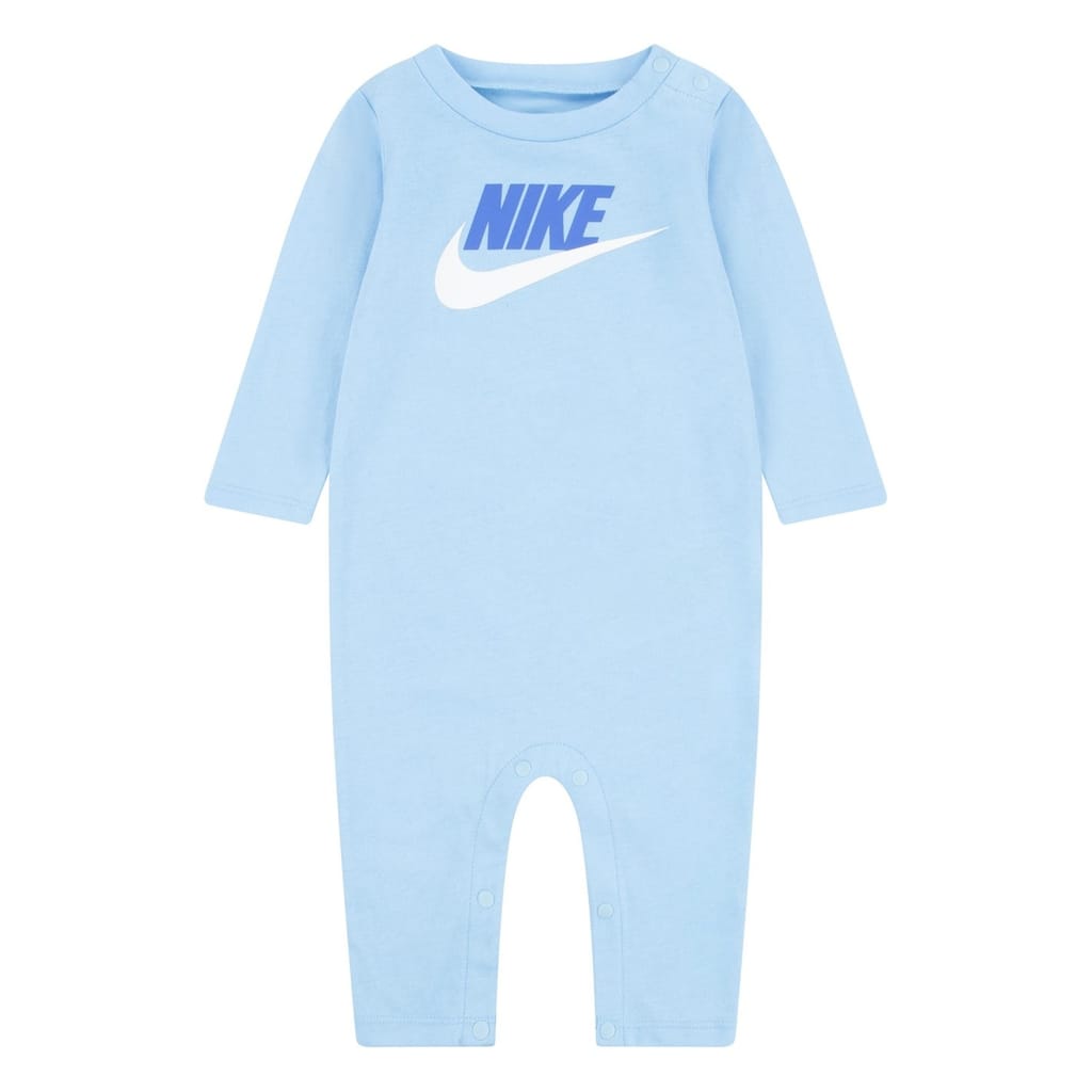 Nike's long-sleeve romper features a crew neck and plain sleeves, offering a regular fit. The design is accentuated with a logo print and front logo embellishments. It includes a snap closure for convenience. -