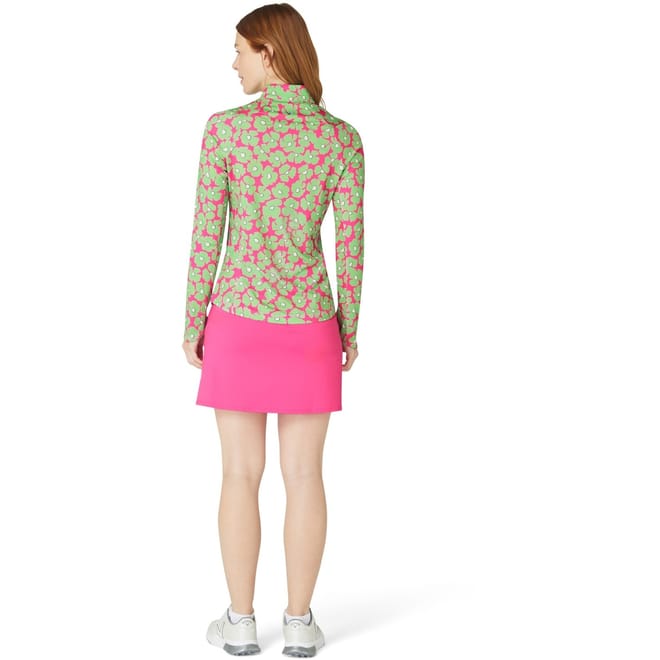 This Callaway top features a regular fit with a long sleeve design and a fitted cuff. The high collar and zip neck add a touch of sophistication, while the quarter zipper closure ensures ease of wear. The floral pattern brings a stylish flair to this piece, making it a versatile addition to your wardrobe. -
