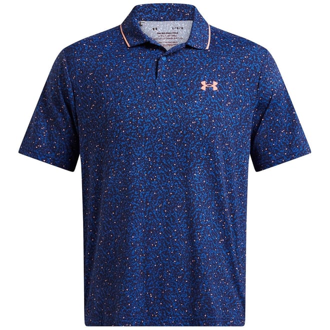 Discover the Under Armour top, designed for performance with its iso-chill technology. This short-sleeve piece features a speckled pattern and a polo collar, offering a regular fit for comfort and style. -