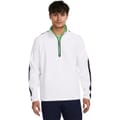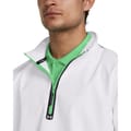 This Under Armour top features a half zipper closure and a zip neck design, offering a regular fit. Crafted from knit material, it has long sleeves and a solid pattern. The top is embellished with a logo, adding a subtle brand touch. -