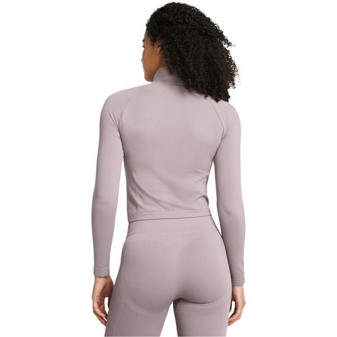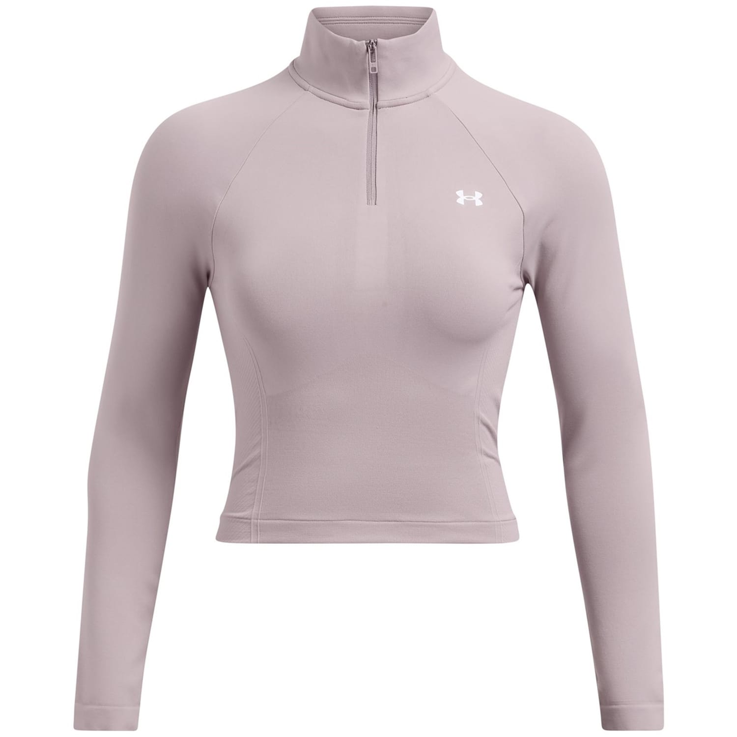 This Under Armour cropped top features a quarter zipper closure and a funnel neck design. The long raglan sleeves with fitted cuffs offer a sleek look, while the slim fit ensures a flattering silhouette. Crafted in a solid pattern, this top is perfect for those seeking a stylish yet functional addition to their wardrobe. -