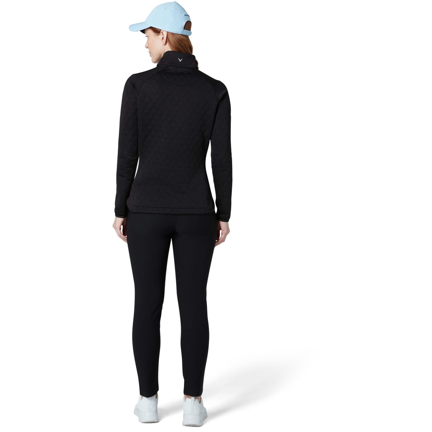 This Callaway top is designed for performance with a regular fit and long raglan sleeves. It features a geometric pattern and a high collar with a quarter zipper closure. The top includes a zipped pocket for added functionality and fitted cuffs for a secure fit. -