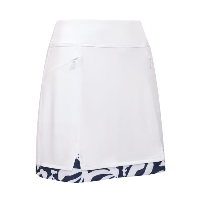 This Callaway mini skort is a perfect blend of style and functionality. Featuring a floral pattern, it offers a regular fit with a convenient zipper closure. The skort is adorned with practical zipped and welt pockets, along with a subtle logo embellishment, making it a versatile choice for casual collections. -