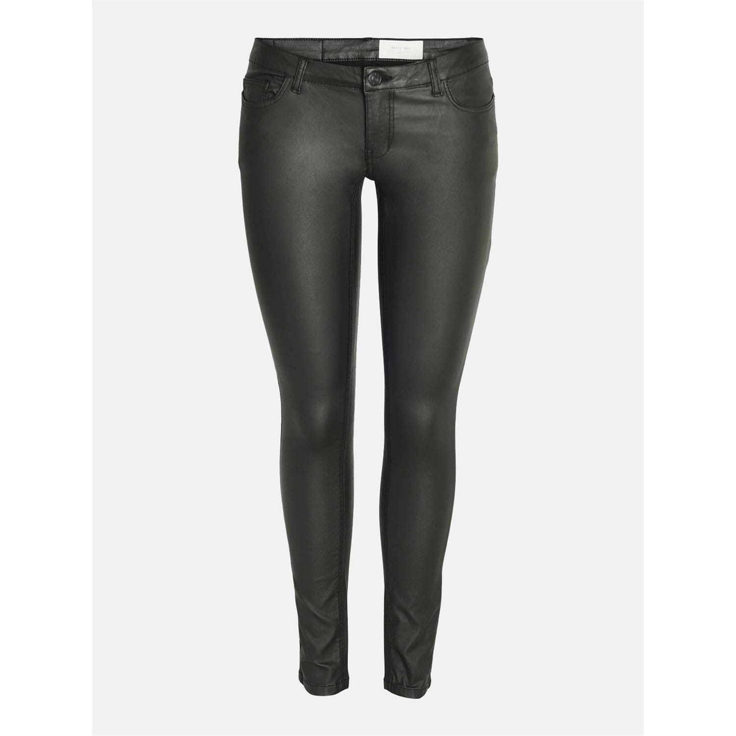 Discover the Noisy May five-pocket pants, featuring a zip fly and button closure with belt loops for a secure fit. These pants are designed with practical embellishments, including front and back pockets, a coin pocket, and detailed stitching, offering both style and functionality. -