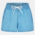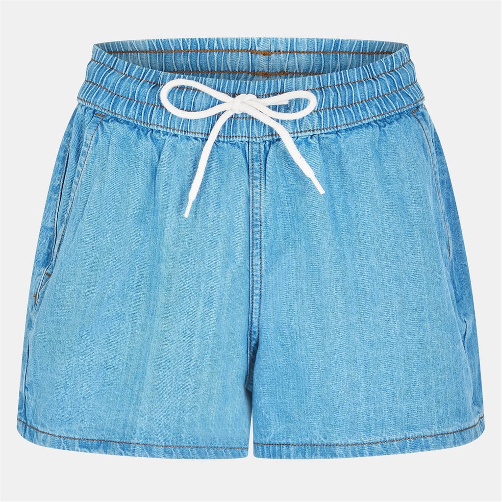 Noisy May solid bermuda shorts feature a drawstring closure and an elastic waistband for a comfortable fit. These casual jean shorts are designed with practical side and front pockets, along with stitched details for added style. Perfect for a laid-back look, they are a versatile addition to any casual collection. -
