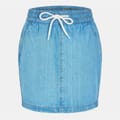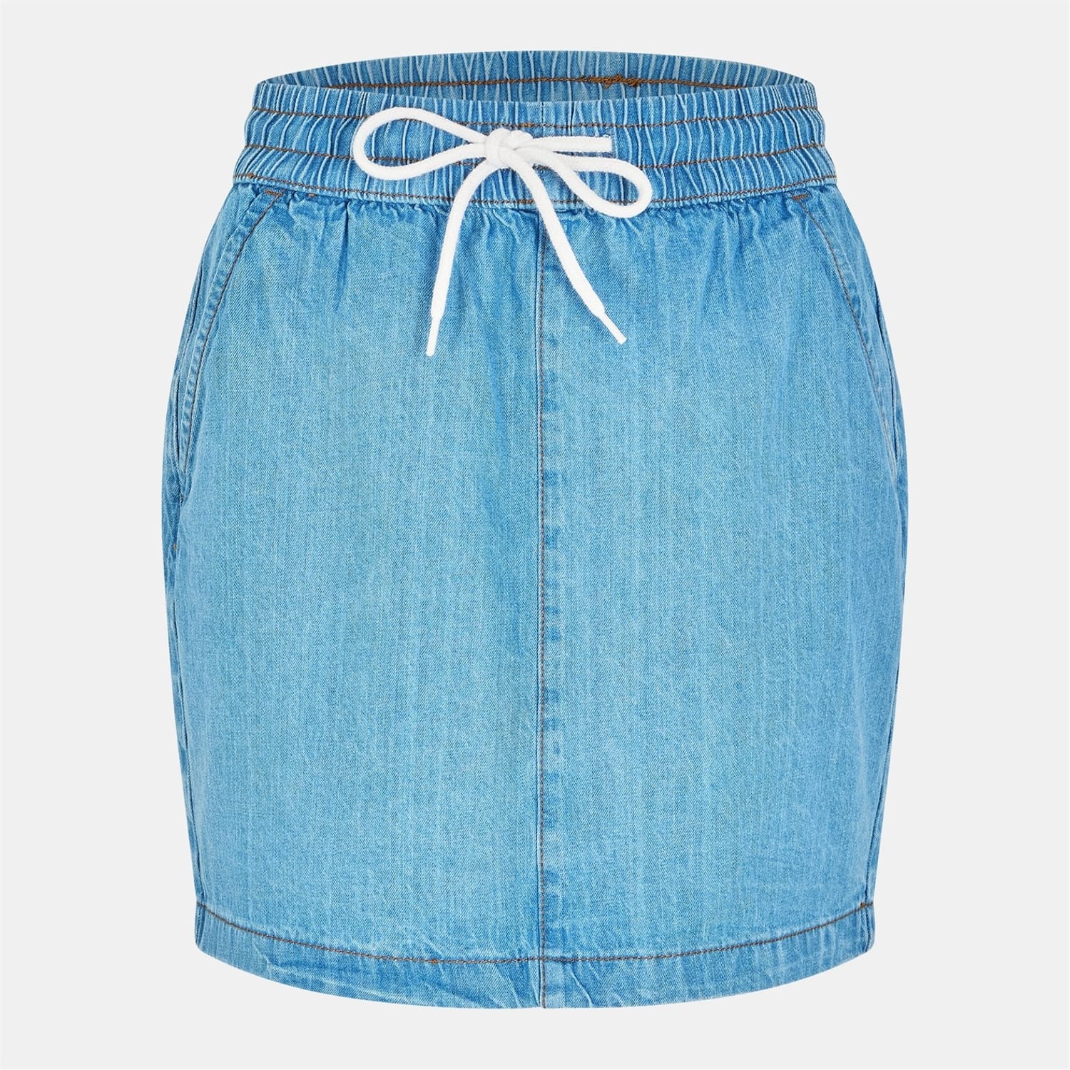 Discover the Noisy May mini mom skirt, a casual piece featuring an elastic waistband with a drawstring for a comfortable fit. This regular fit skirt is designed with practical pockets and detailed stitching, making it a versatile addition to your wardrobe. -