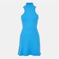 This Noisy May skater dress is a stylish mini-length piece featuring a high collar and mock neck. Its solid pattern and curved hem add a touch of elegance, while the regular fit ensures comfort. Perfect for those seeking a chic and modern look. -