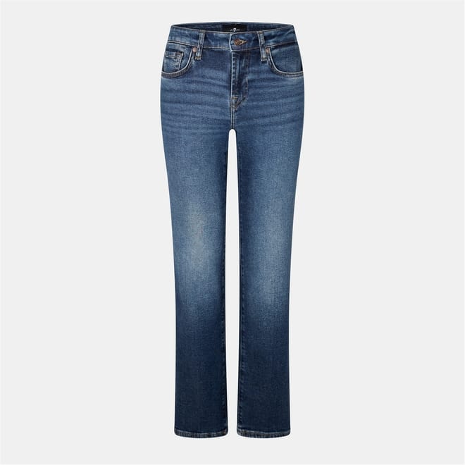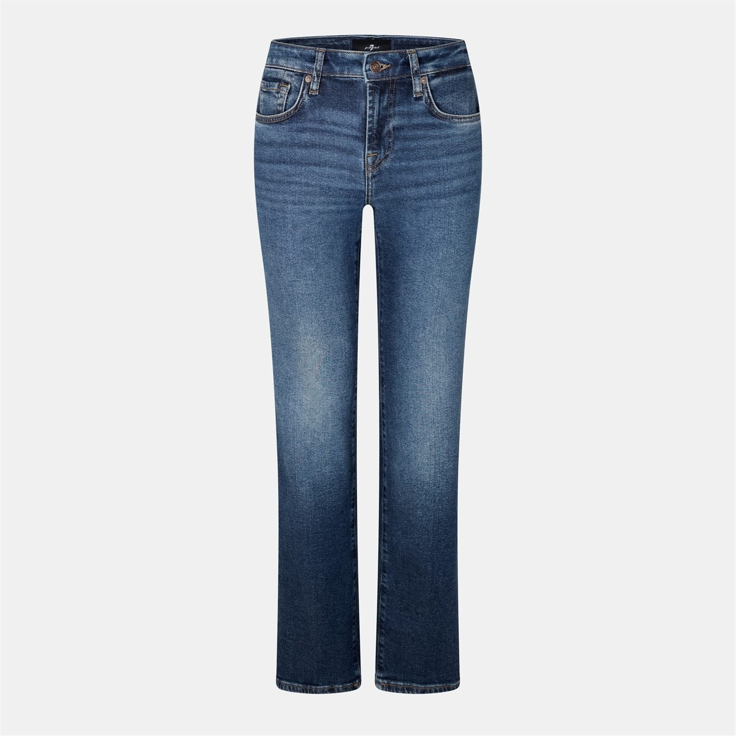 Discover the 7 for all mankind jeans, featuring a straight fit and a classic five-pocket design. These jeans come with a zip fly, front button, and belt loops for a secure fit. The wash pattern adds a touch of style, while the detailed stitching and rivets enhance durability. Practical pockets, including front, back, coin, and waist pockets, offer ample storage. -