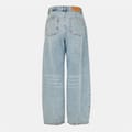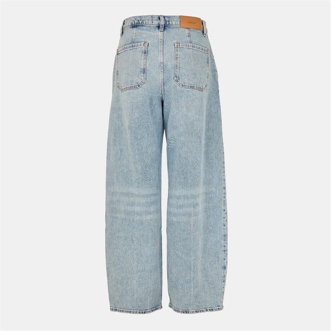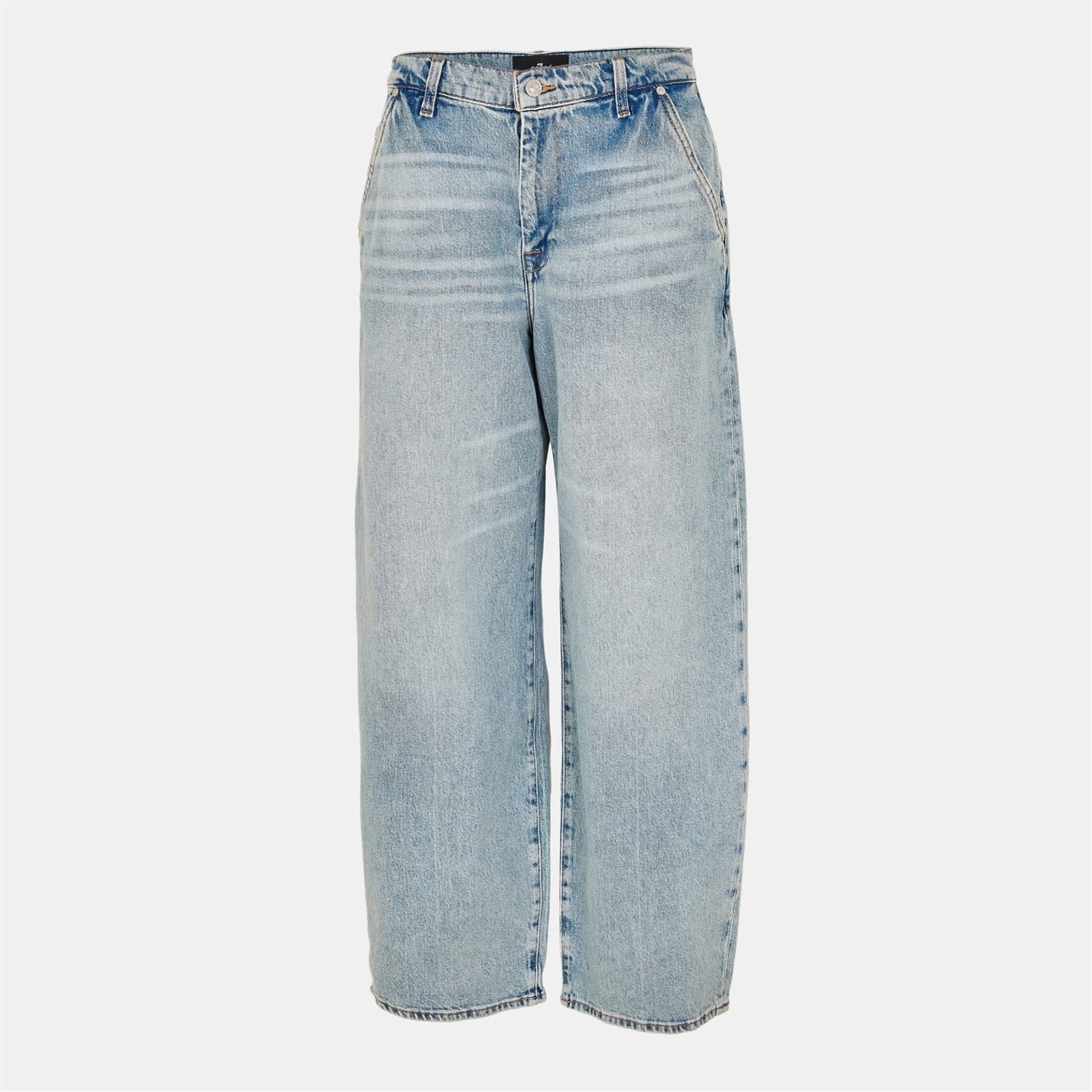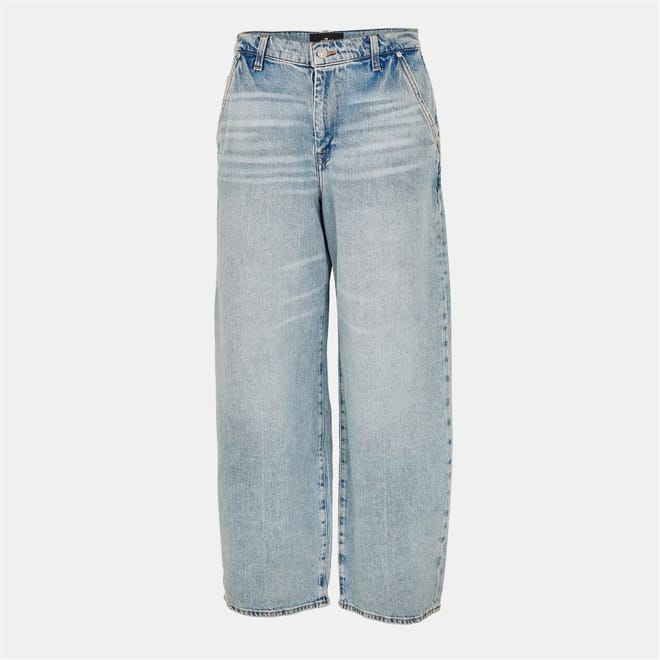 Discover the 7 for all mankind wide-leg jeans, featuring a light wash and wide fit. These jeans come with a zip fly, front button, and belt loops for a secure fit. Embellished with front, back, and coin pockets, along with a waist patch and stitching details, they offer both style and functionality. A leather patch adds a touch of sophistication to this versatile piece. -