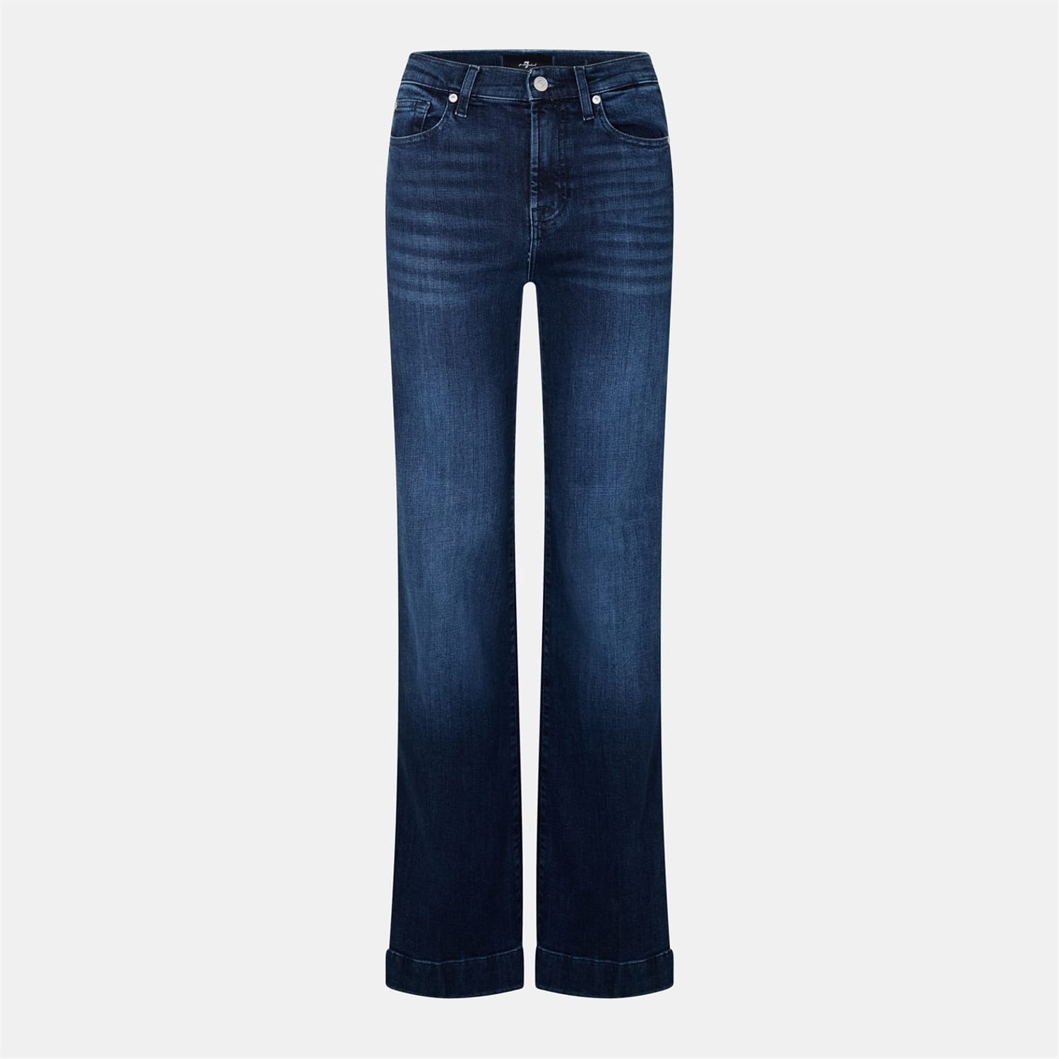 Discover the 7 for all mankind jeans featuring a wide fit and a classic five-pocket design. These jeans come with a zip fly, front button, and belt loops for a secure fit. The wash pattern adds a stylish touch, while the detailed stitching and whiskers enhance the overall look. Practicality is ensured with front, back, and coin pockets. -