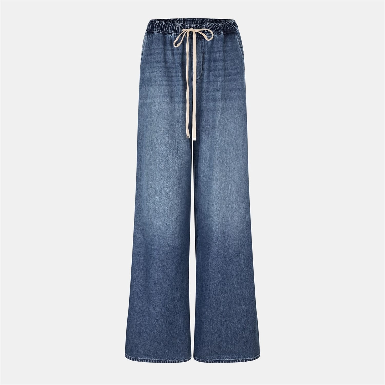Discover the wide-leg jeans from 7 for all mankind, featuring a stylish wash pattern. These jeans offer a comfortable wide fit, complemented by an elasticated waistband and drawstring closure for added convenience. Perfect for those seeking a blend of style and comfort in their wardrobe. -
