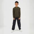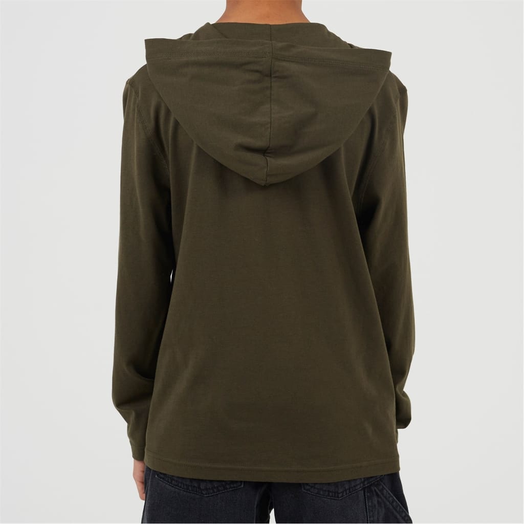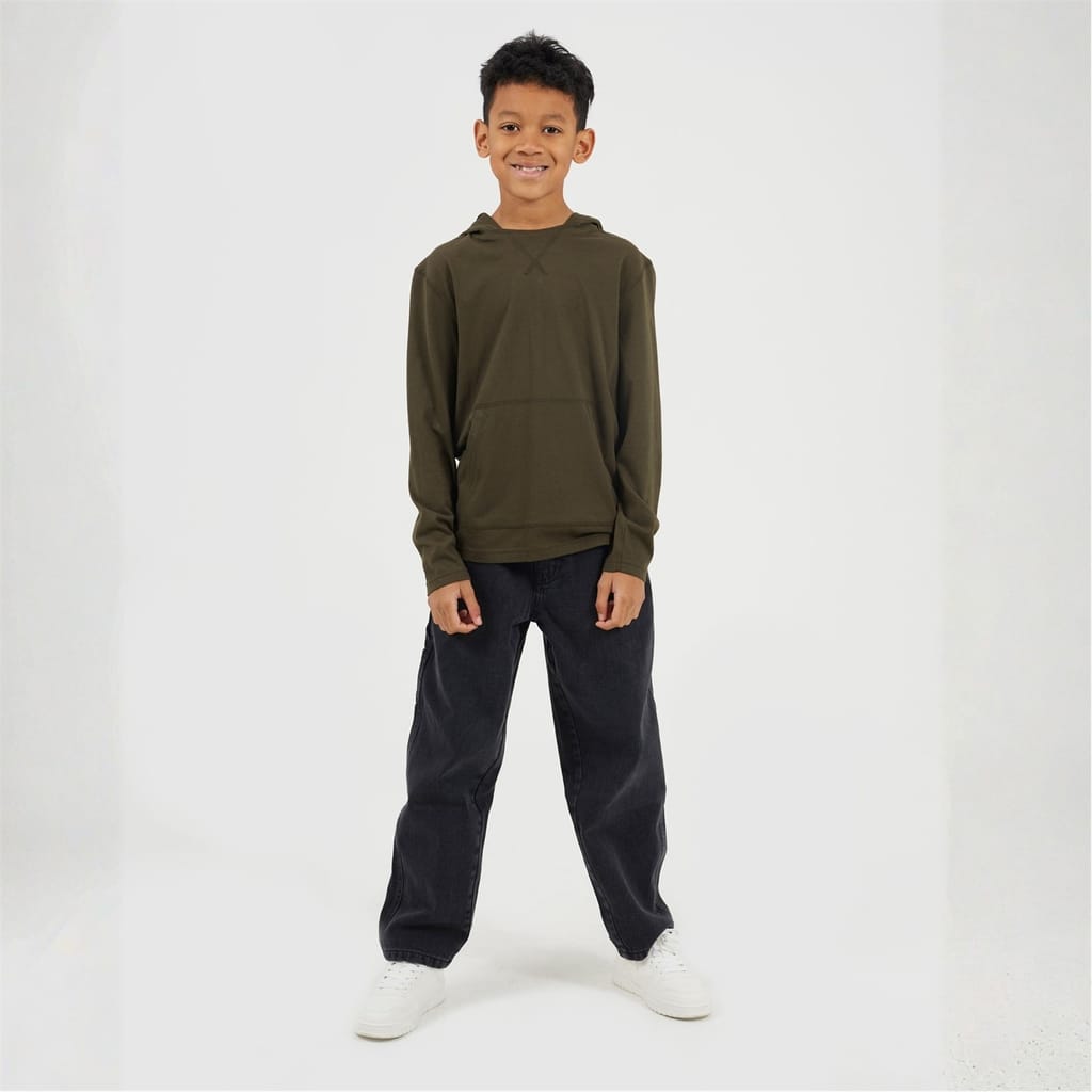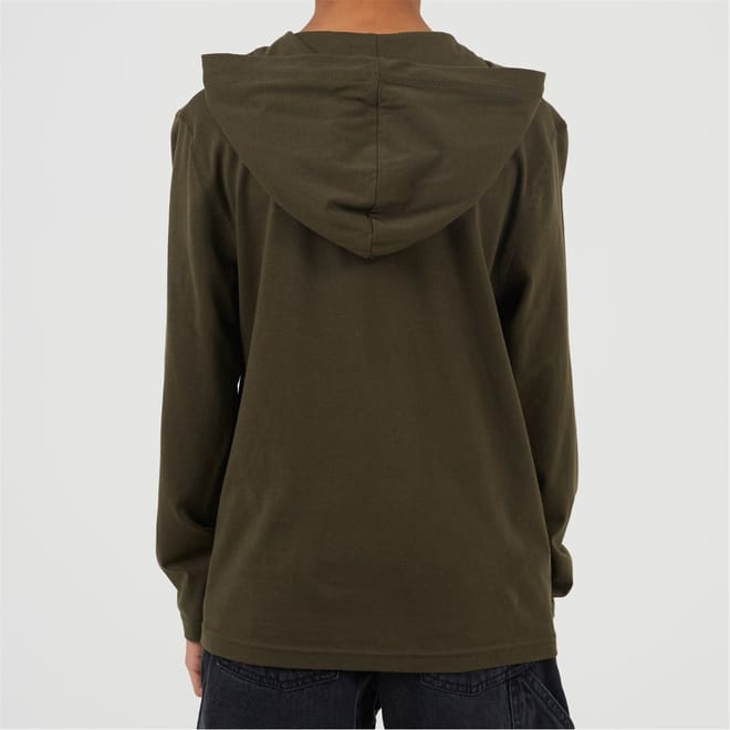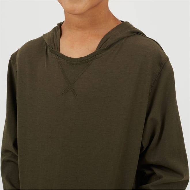 Brave Soul Boy's Hoodie. Long set in style sleeve, crossover neck stitch detail. Fixed hood, front kangaroo pocket, solid colourway. -