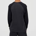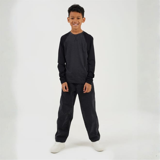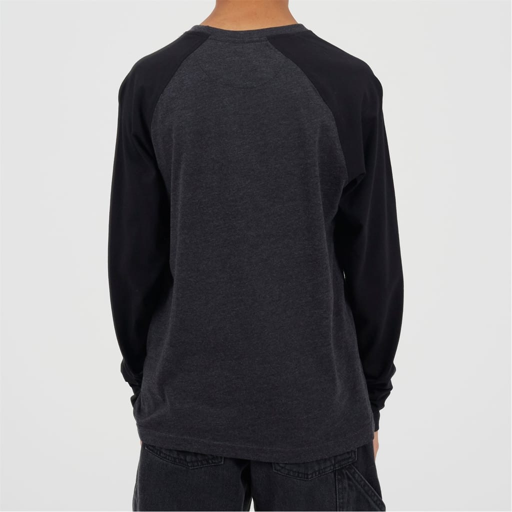Brave Soul Boys Tee. Long sleeve, crew neck with modesty V front. Contrast colour raglan style sleeves, ribbed neck. -