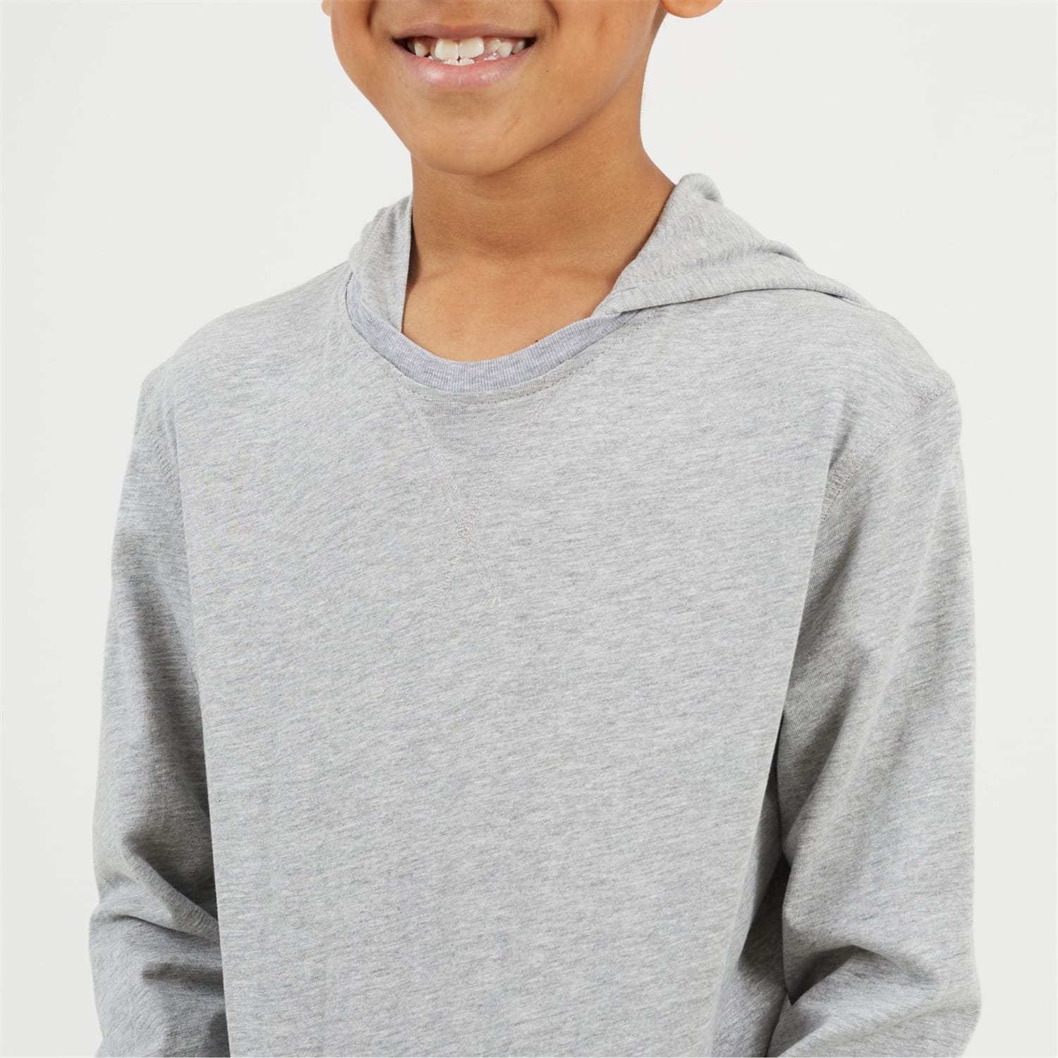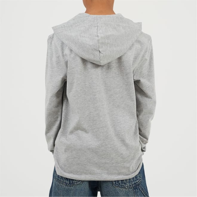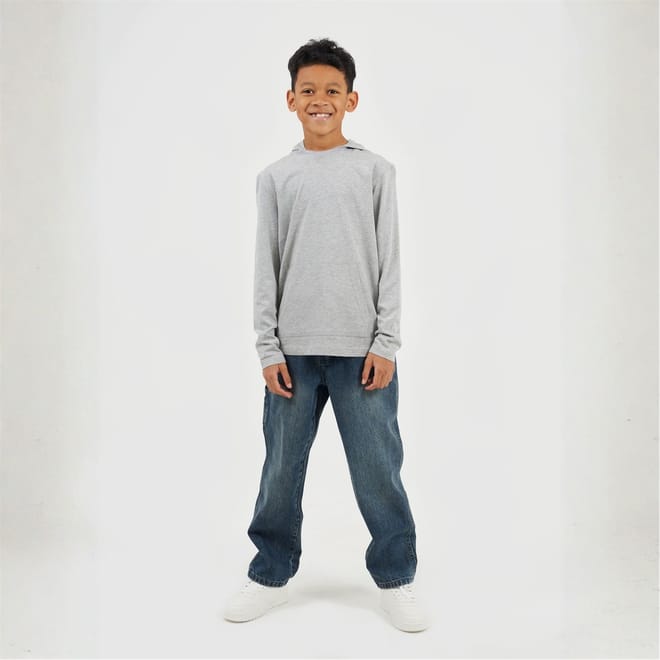 Brave Soul Boy's Hoodie. Long set in style sleeve, crossover neck stitch detail. Fixed hood, front kangaroo pocket, solid colourway. -