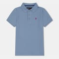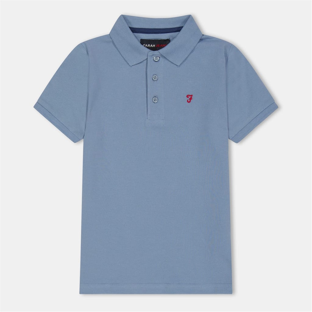This Farah top features a classic polo collar and a front button closure, offering a regular fit. The short sleeves and solid pattern provide a timeless look, while the embroidered detail adds a touch of sophistication. -