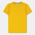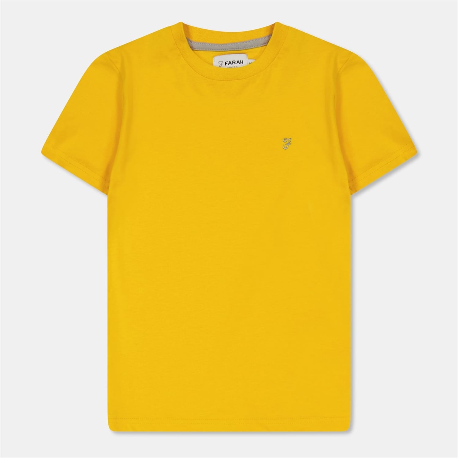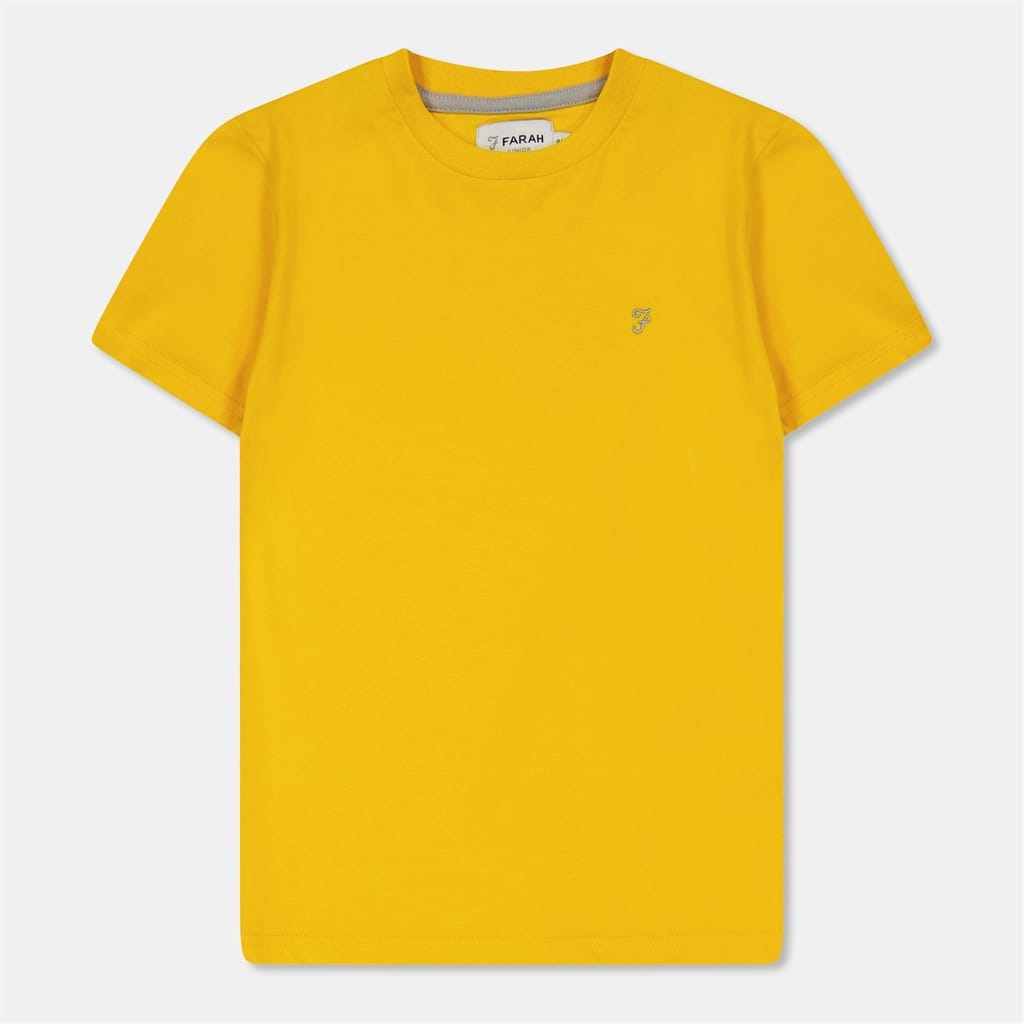 This Farah top features a regular fit with a crew neck and short sleeves. The solid design is complemented by an embroidered detail, adding a touch of sophistication. The straight hemline ensures a clean finish, making it a versatile addition to any wardrobe. -