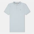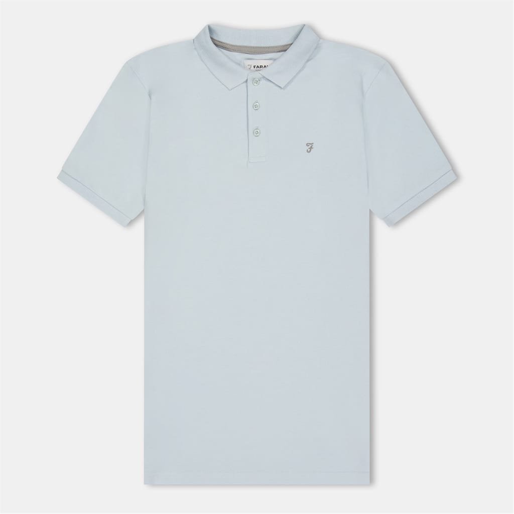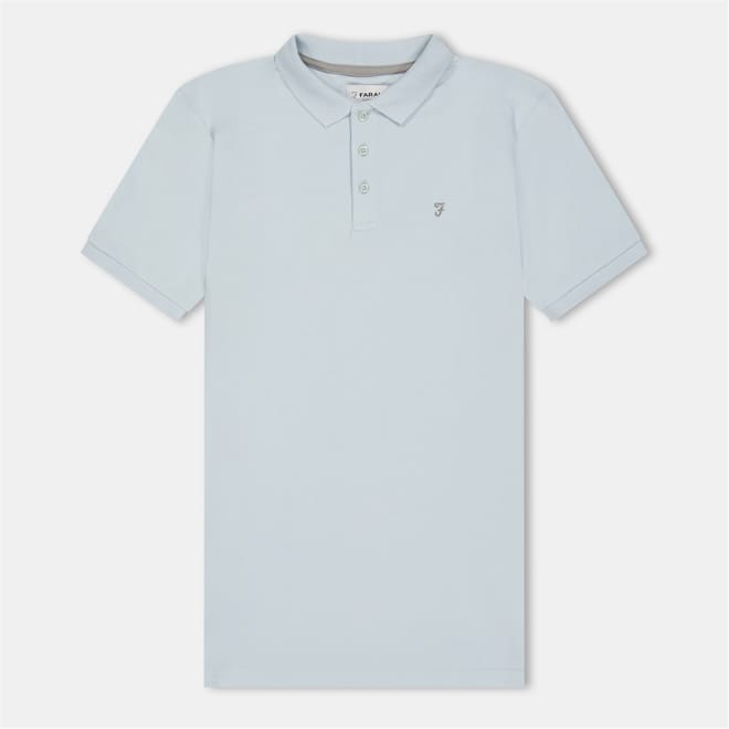 This Farah top features a classic polo collar and a front button closure, offering a regular fit. The short sleeves and solid pattern provide a timeless look, while the embroidered detail adds a touch of sophistication. -